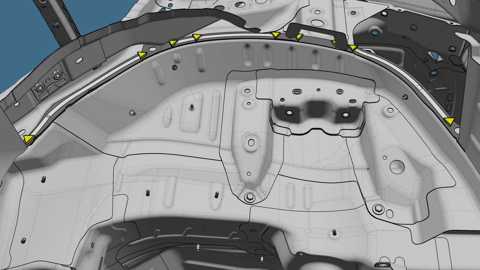 - Apply structural adhesive to the mating surfaces on the vehicle and the new component or components.