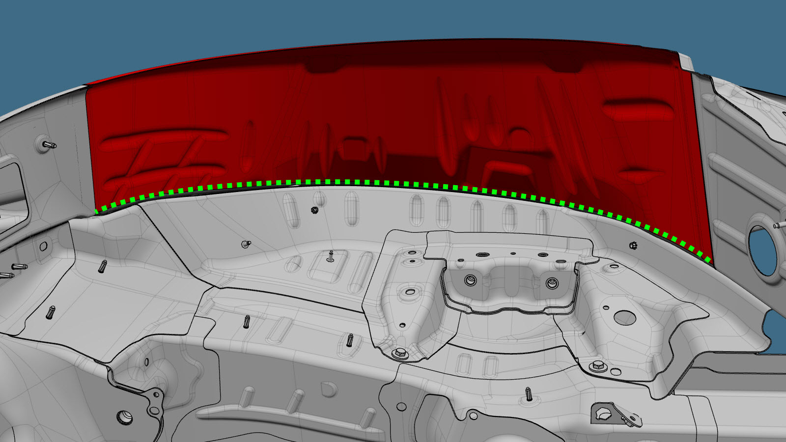 - Riparato in sezioni più grandi o più piccole rispetto alla parte di ricambio. Qualsiasi sezione singola o combinazione di sezioni del passaruota posteriore può essere sostituita a condizione che vengano seguite le linee guida di Linee guida per il sezionamento.