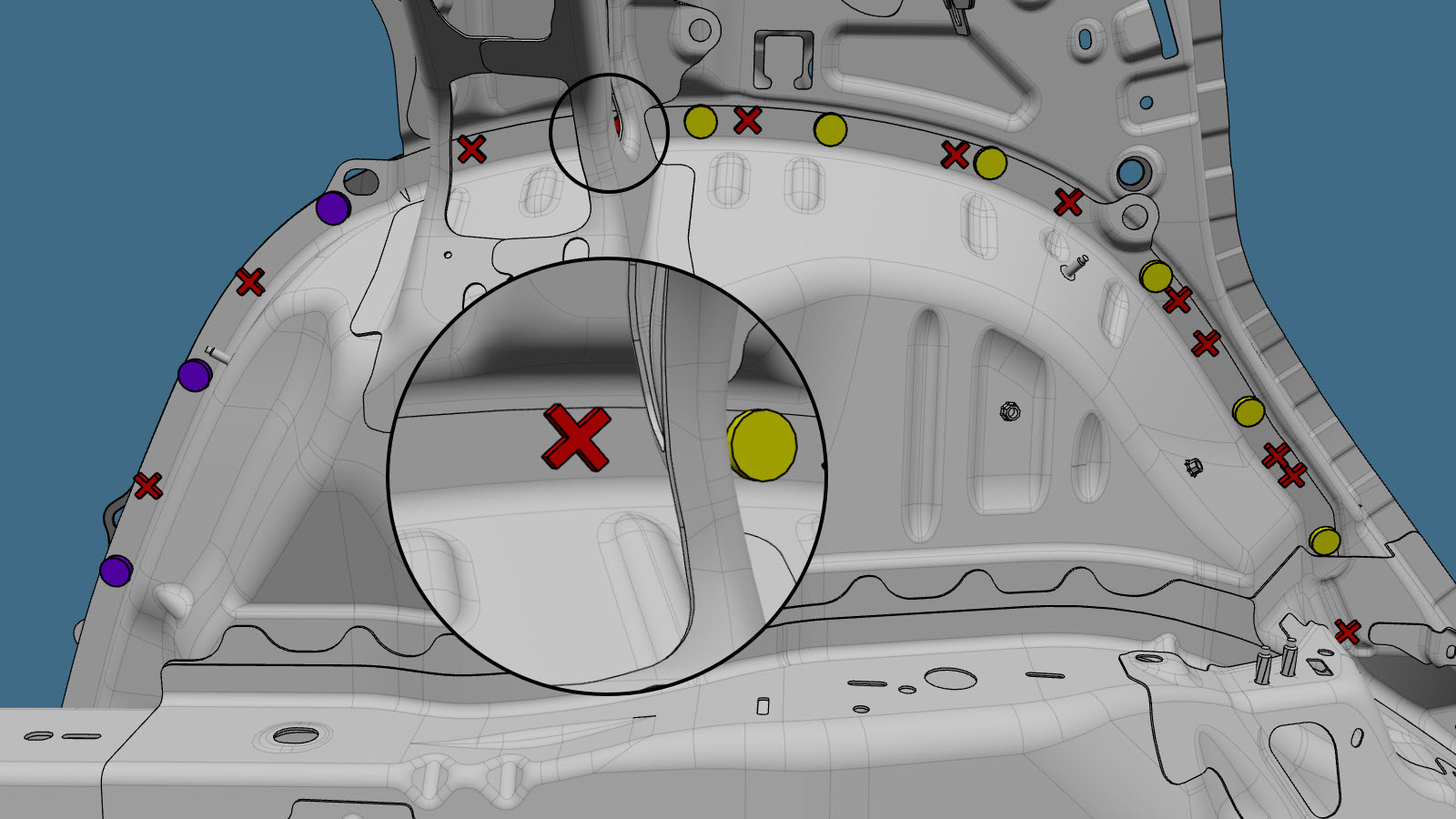 | Aree gialle: | In queste aree il sezionamento è consentito. Nota Il sezionamento in queste aree richiede che il componente venga riportato alla sua geometria originale per una corretta funzionalità. I giunti sovrapposti devono avere una sovrapposizione di almeno 25 mm che deve essere fissata con dell'adesivo strutturale. Nota Quando si utilizza un giunto sovrapposto tra un'area rossa e una gialla, la prima deve sovrapporsi alla seconda di almeno 25 mm. Non sovrapporre un'area gialla a una rossa. Nelle aree indicate in giallo possono essere incluse aree che consentono l'ingresso di acqua, pertanto prestare particolare attenzione per garantire una perfetta sigillatura di tutte le aree riparate. Nota Una volta completata la riparazione, verificare che la sigillatura sia perfetta e che l'acqua non possa penetrare nell'area riparata. È possibile montare gli altri componenti sul passaruota posteriore in queste aree. Prestare particolare attenzione per garantire che le aperture nell'area di riparazione abbiano le stesse dimensioni delle aperture originali e che le aree di montaggio consentano di installare in modo corretto i componenti. Nota Una volta completata la riparazione, assicurarsi che i componenti montati siano a filo con la superficie della carrozzeria esterna e che i componenti si adattino perfettamente a tutte le aree riparate. |