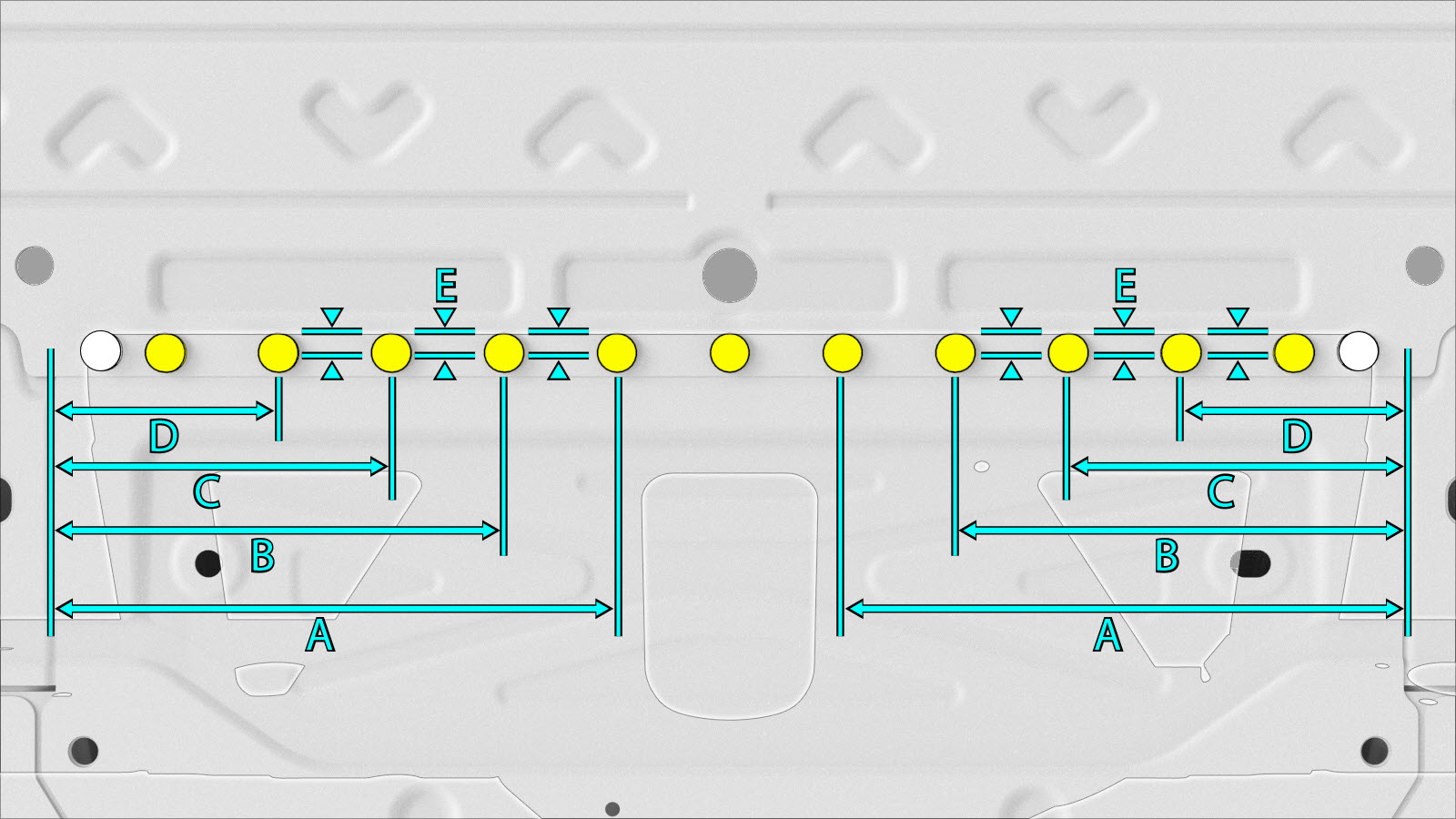 또는 공장 출고 스폿 용접을 통해 구멍 뚫기참고스폿 용접을 드릴로 제거할 때, 스폿 용접을 대신할 패스너에 맞는 크기의 구멍을 만들 수 있는 드릴 비트를 사용합니다.