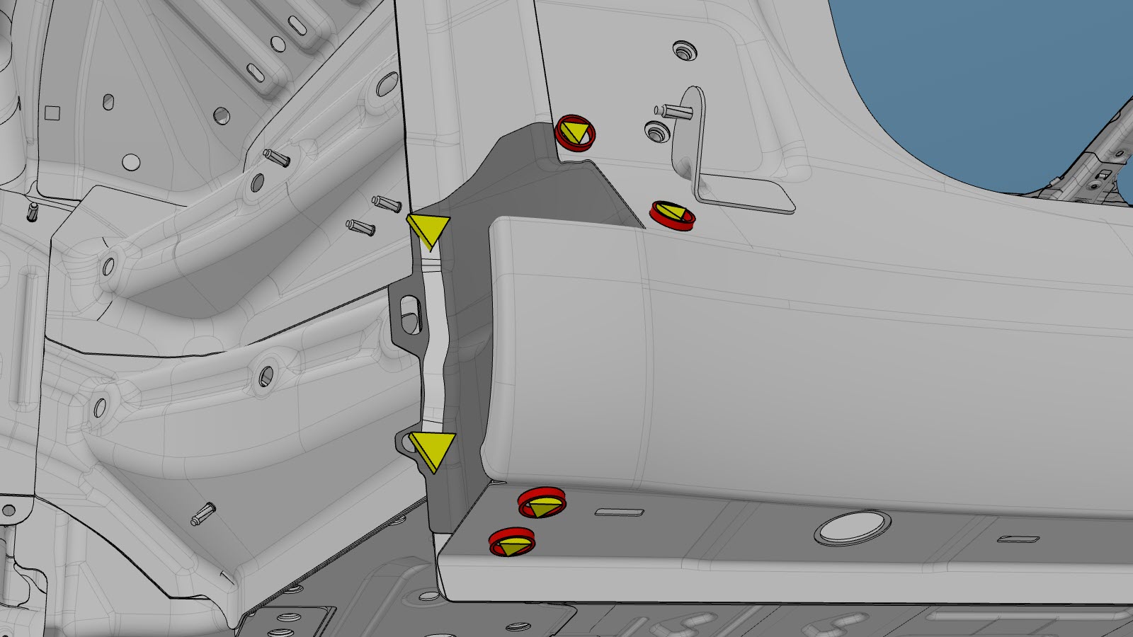 - Aplique adhesivo estructural en las superficies de contacto del vehículo y en el nuevo componente o componentes.