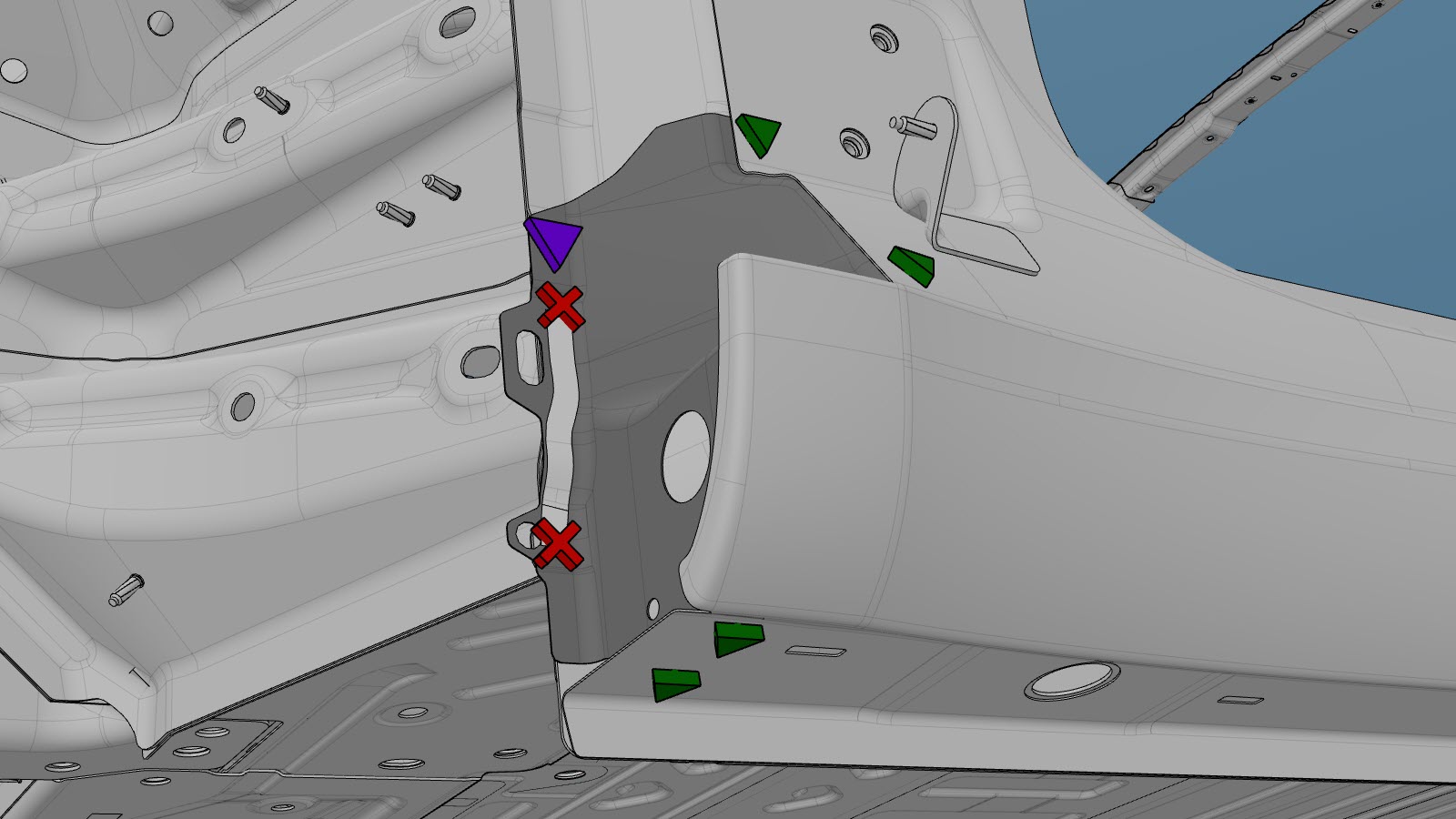 NotaUna X roja indica una ubicación en la que no se está sustituyendo una fijación instalada de fábrica.