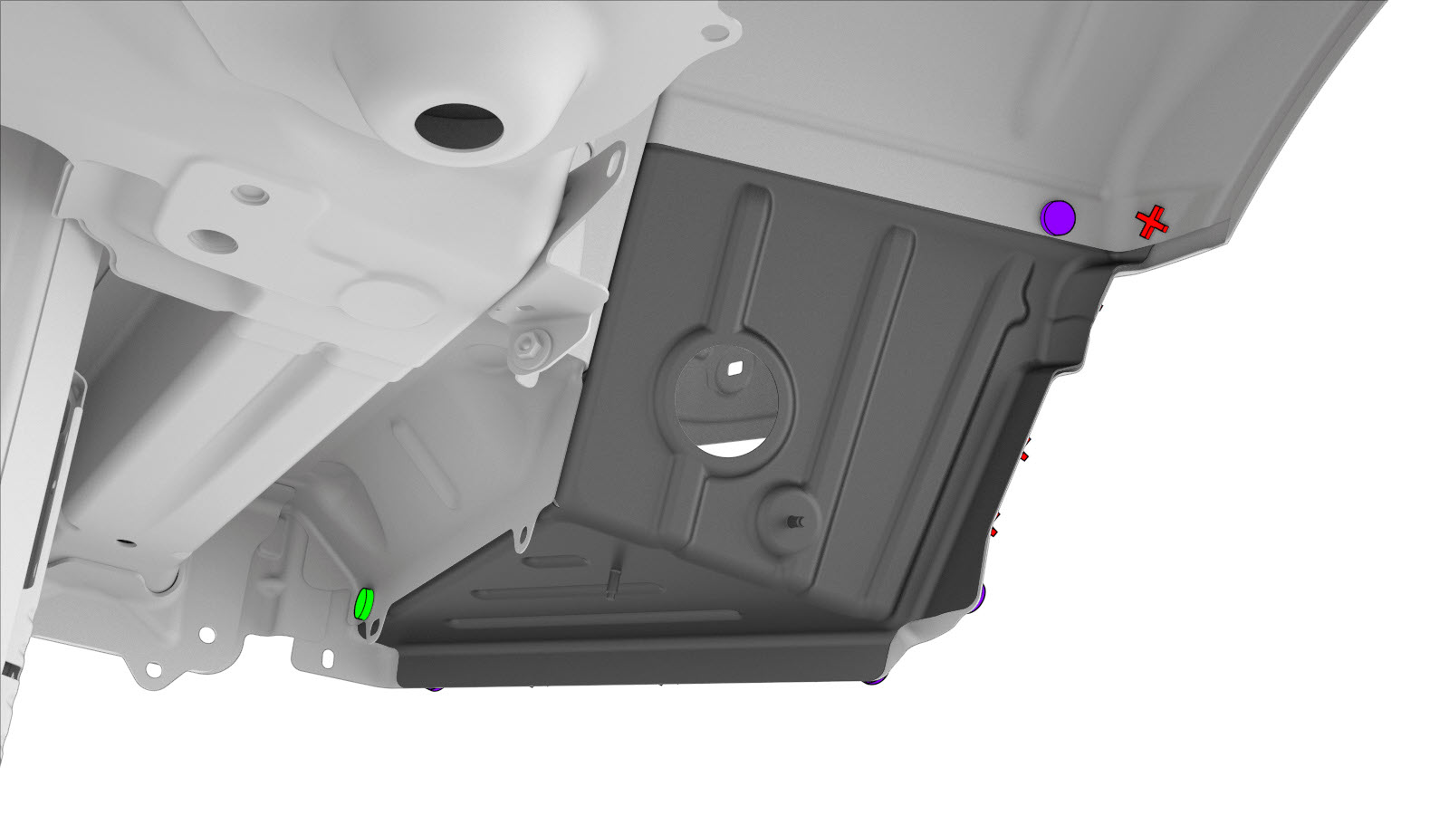 NotaUna X roja indica una ubicación en la que no se está sustituyendo una fijación instalada de fábrica.