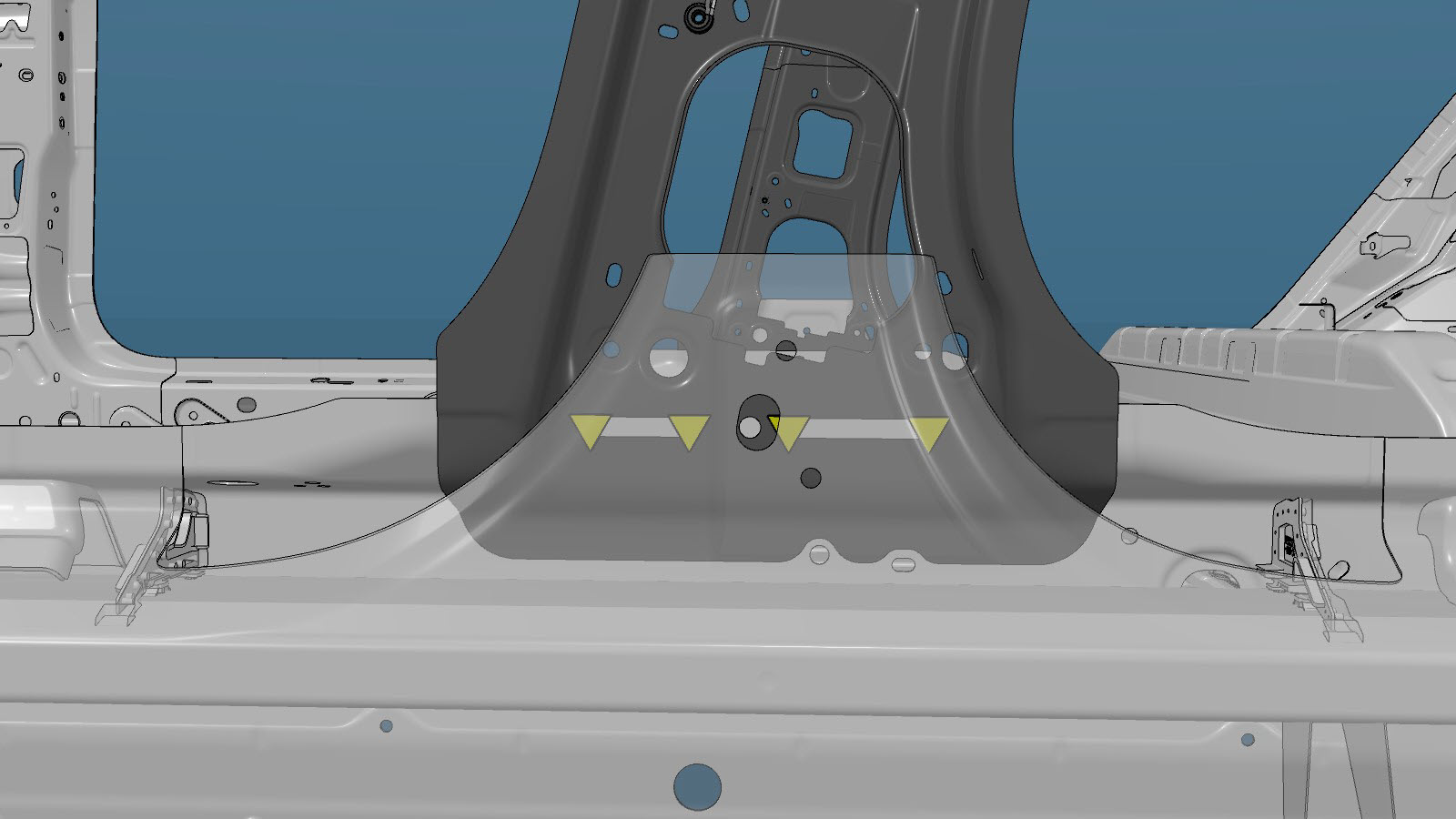 Corte el primer conjunto del interior del pilar B nuevo como se indica a continuación para fabricar el nuevo componente.