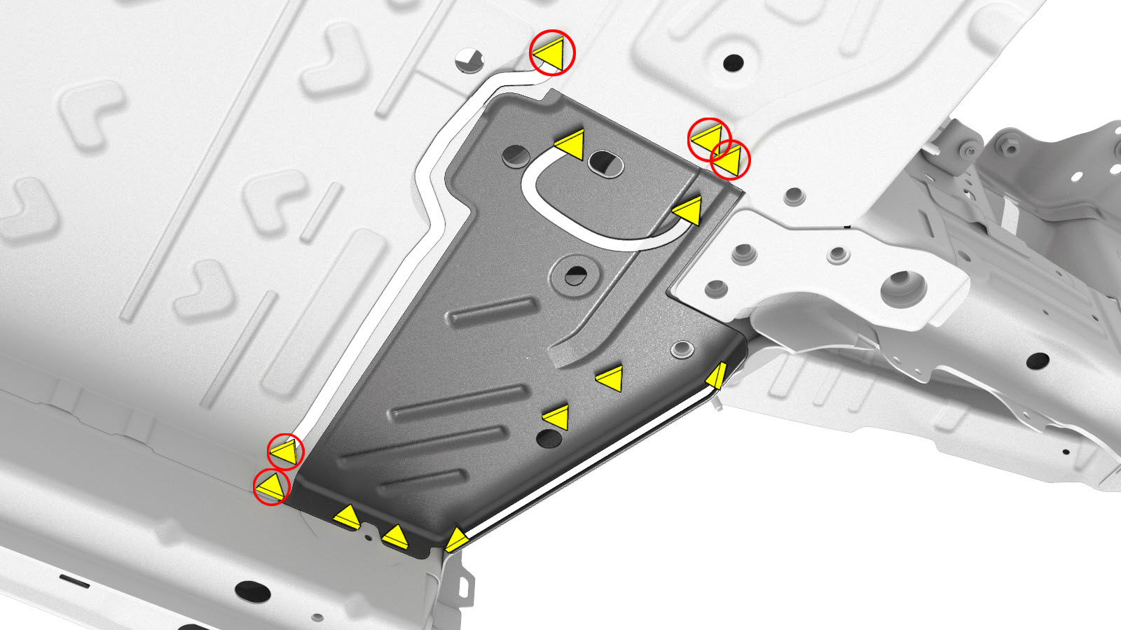 또는 설치 스폿 용접경고개인 보호 장비 사용을 비롯한 용접 안전 주의 사항을 준수하지 않으면 심각한 상해 또는 재산상의 손상이 발생할 수 있습니다. Tesla가 승인한 용접 교육을 이수한 기술자만 Tesla 차량의 구조 구성품 용접을 수행할 권한이 있습니다.경고차량 전기 절연 절차를 수행하기 전에 Tesla 차량에서 용접하지 마십시오(차량 전기 절연 절차에 대한 자세한 내용은 차량별 정비 설명서 참조). 고전압 또는 저전압 시스템의 전원이 연결된 Tesla 차량을 용접하면 차량 구성품에 손상이 발생할 수 있습니다.