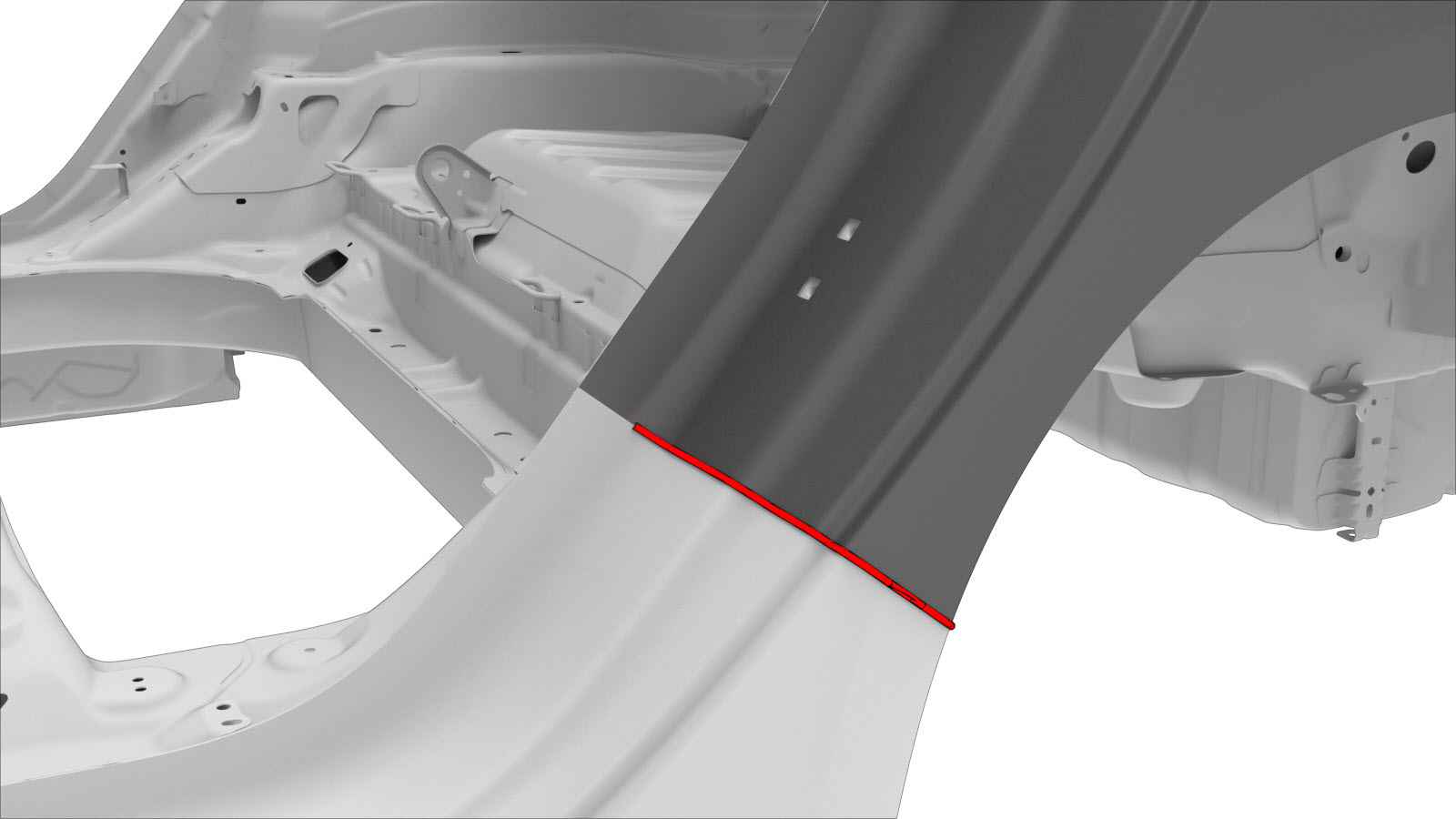 | 쿼터 외측 어셈블리는 단일 어셈블리이며 단일 수리로 교체하거나 전체 쿼터 외측 어셈블리를 교체하는 대신 이 문서에서 설명된 절단선을 사용하여 전체 쿼터 외측 어셈블리의 일부를 이용해 쿼터 외측의 영역을 교체할 수 있습니다. | ||