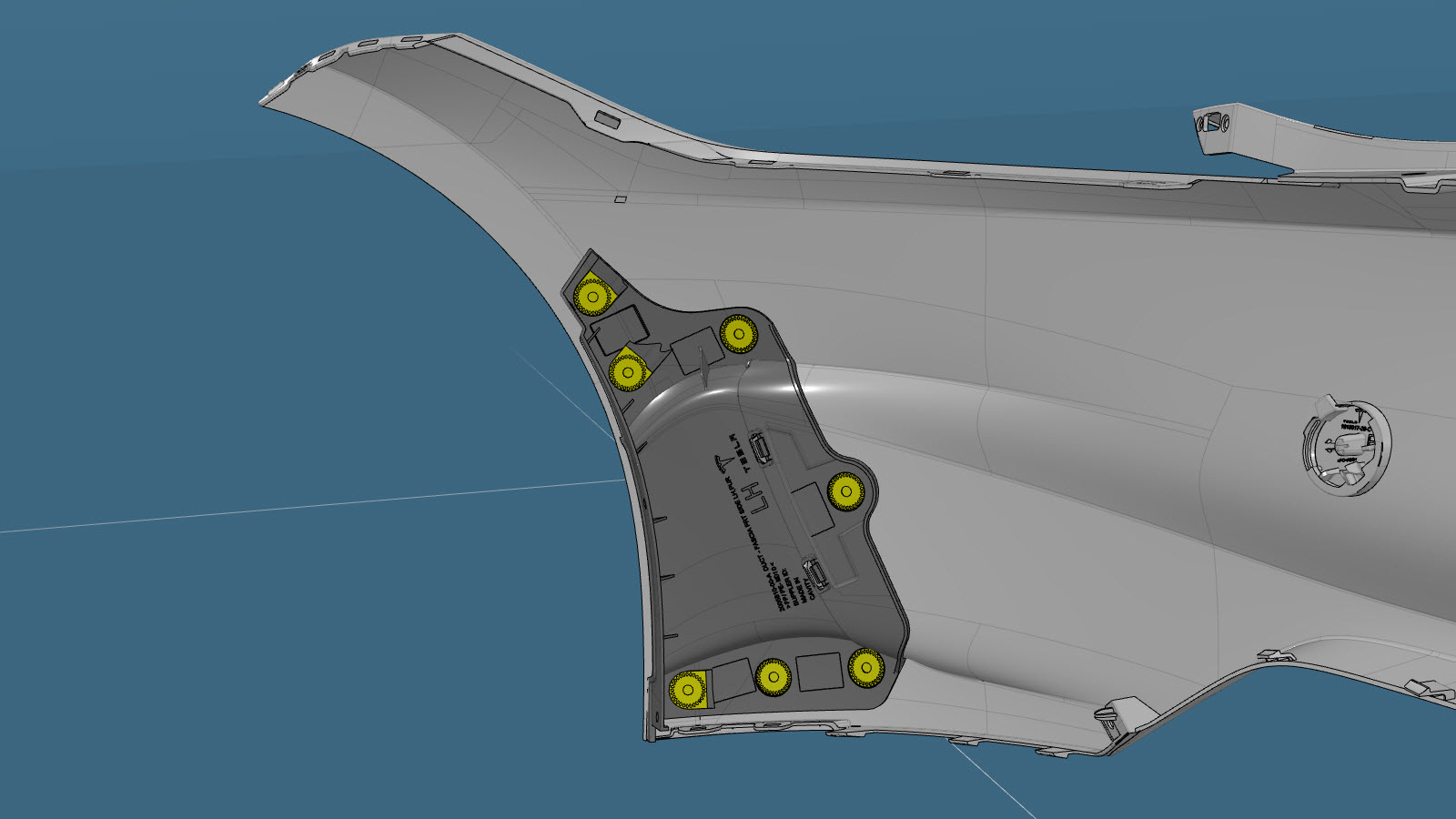 - 레이더 영역을 제외한 전면 범퍼 페시아의 수리는 가능합니다. (수리 작업에는 플라스틱 필러 추가, 접착, 플라스틱 용접, 플라스틱 스테이플링 또는 깃털 모양의 가장자리 도색부를 그대로 두는 작업이 포함됩니다.)