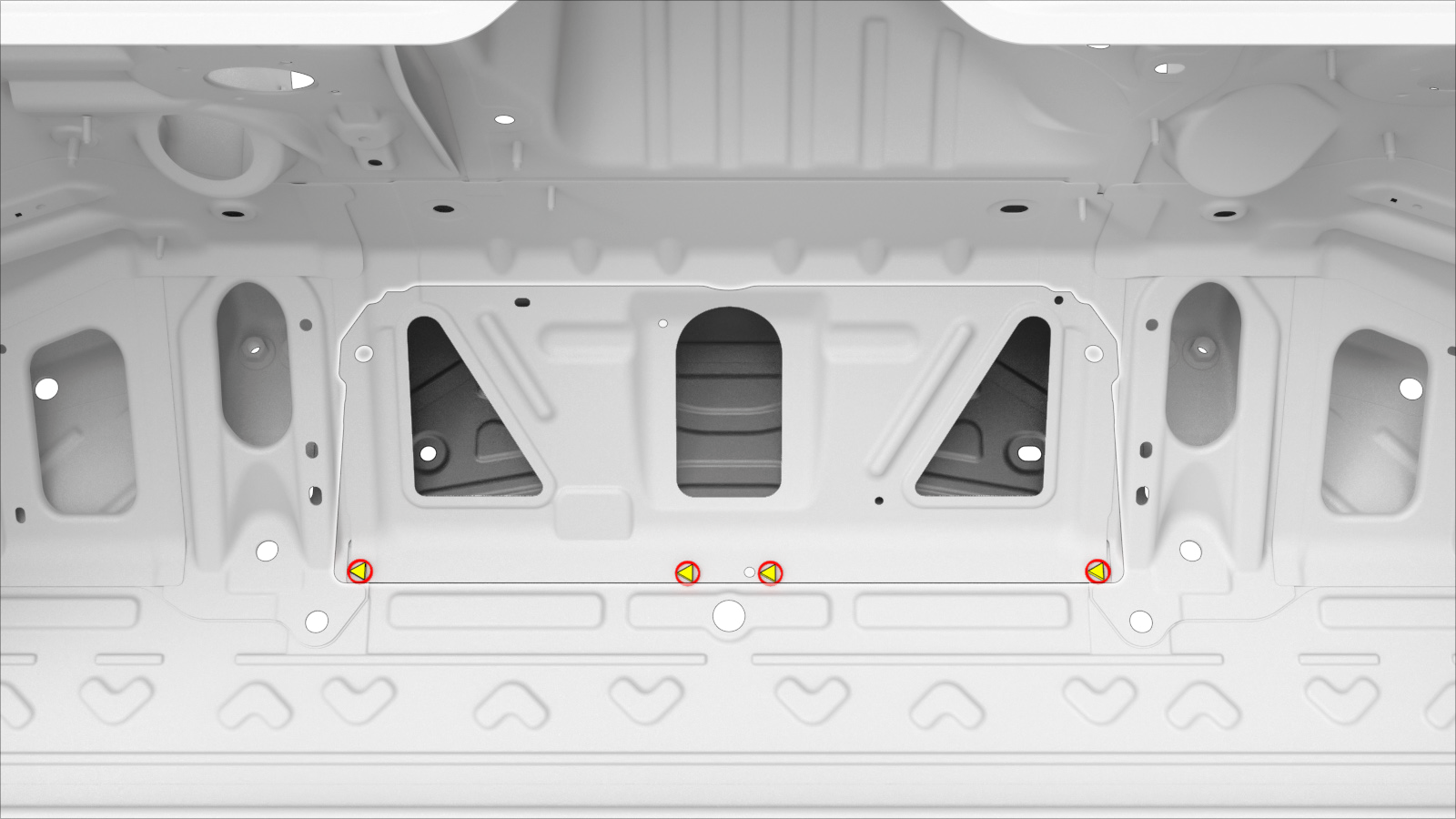 要检修以黑色圈出的点焊焊缝,请将中央车底面板的边缘(以红色显示)折回。