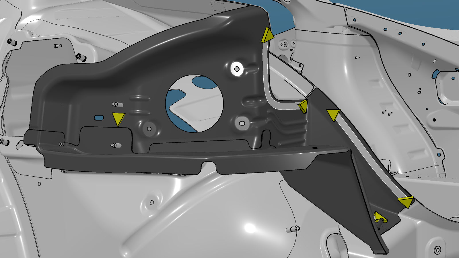 Entfernen Sie den erforderlichen Teil der Seitenwand – Fahrzeuge mit Ladeanschluss für China, um das darunterliegende Bauteil, das entfernt werden soll, freizulegen.