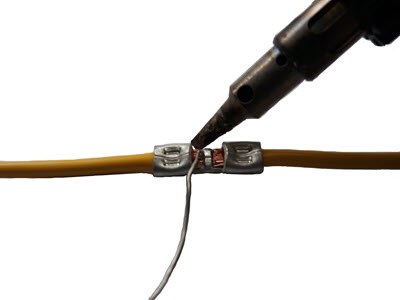 9. Den Lötkolben von der Hülse entfernen, bevor das Lot in die Kabelisolierung eindringt oder der Lötkolben die Isolierung überhitzt.