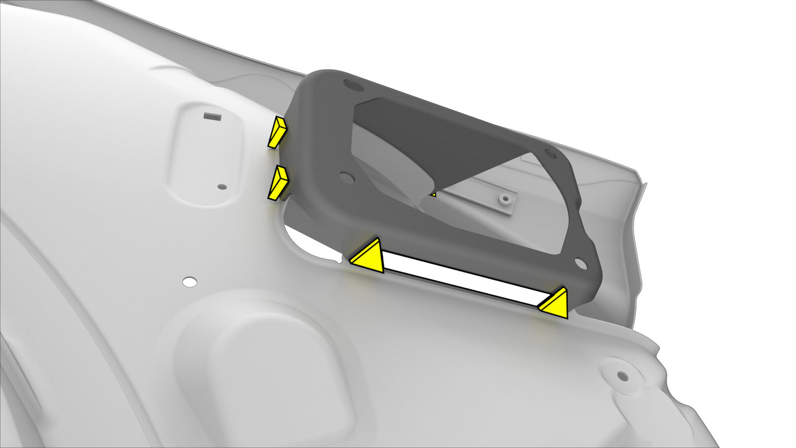 Entfernen Sie den erforderlichen Teil der Seitenwand – Fahrzeuge mit Ladeanschluss nicht für China, um das darunterliegende Bauteil, das entfernt werden soll, freizulegen.