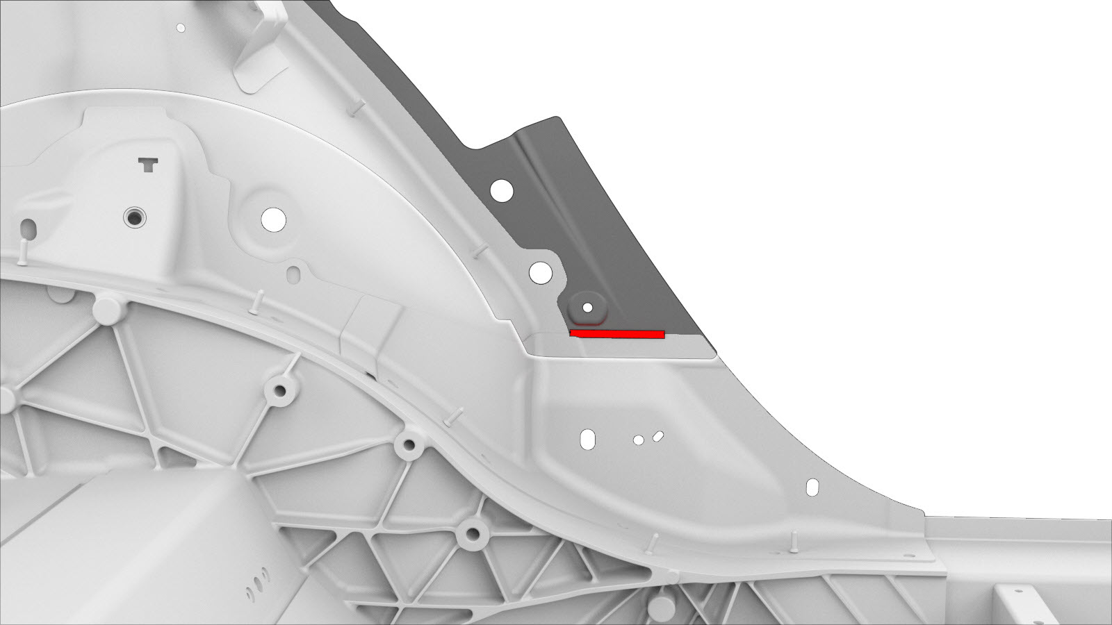 - Der Abschnitt Reparaturverfahren dieses Verfahrens enthält die nötigen Informationen zum Austauschen des gesamten äußeren Radkastens. Wenn Sie den hinteren Abschnitt des äußeren Radkastens ersetzen (nicht den gesamten äußeren Radkasten), verwenden Sie das Verfahren Radkasten außen (Abschnitt) – Fahrzeuge ohne Ladeanschluss für China.