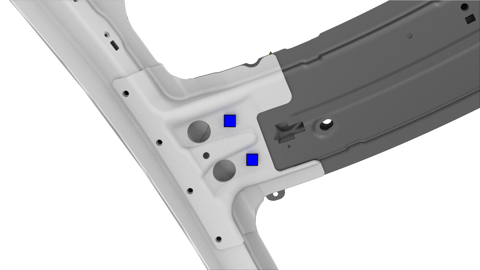 Die vordere Querträgerbaugruppe von Model S kann mit Querträger-Verbindungshalterungen der 1. oder der 2. Generation am Fahrzeug befestigt sein. Prüfen Sie die Querträger-Verbindungshalterungen am zu reparierenden Fahrzeug, und klicken Sie auf den Link unten, um das richtige Reparaturverfahren zu erhalten: