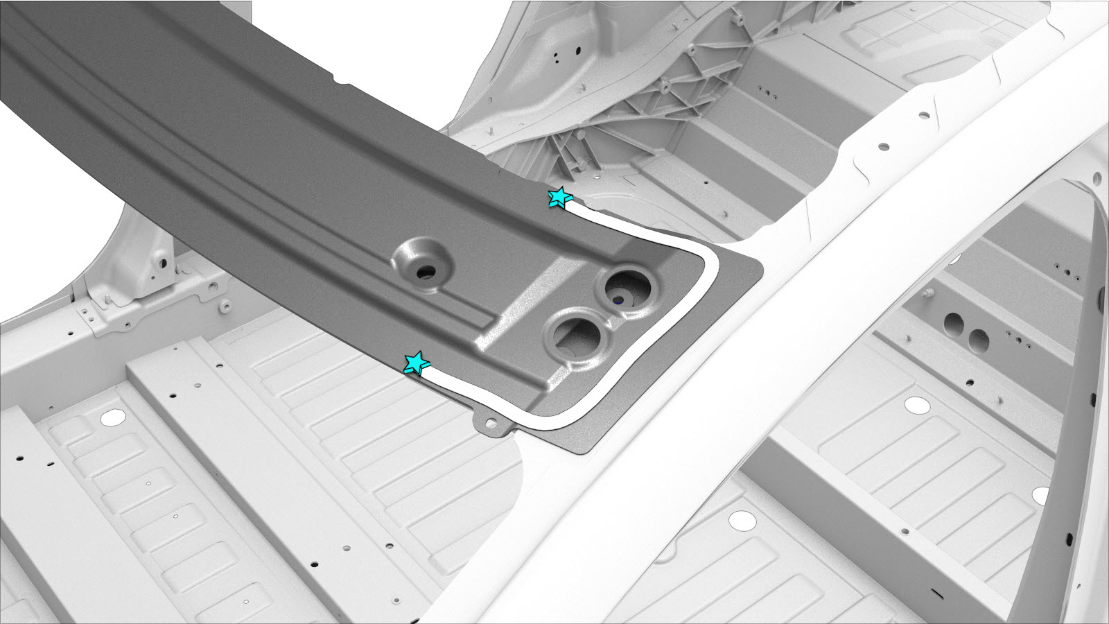 - Tragen Sie Strukturklebstoff auf die Passflächen des Fahrzeugs und des neuen Bauteils bzw. der neuen Bauteile auf.