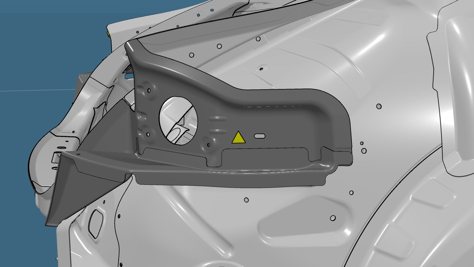 Instale la parte necesaria de Capa exterior de la aleta – Vehículos con un puerto de carga que no sea de China que retiró para dejar al descubierto el componente que se va a sustituir.