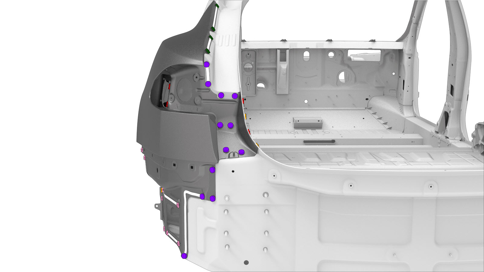 참고후면 쿼터 외측의 한 부분만 교체하는 경우: 탈거하는 부분의 패스너만 탈거합니다.