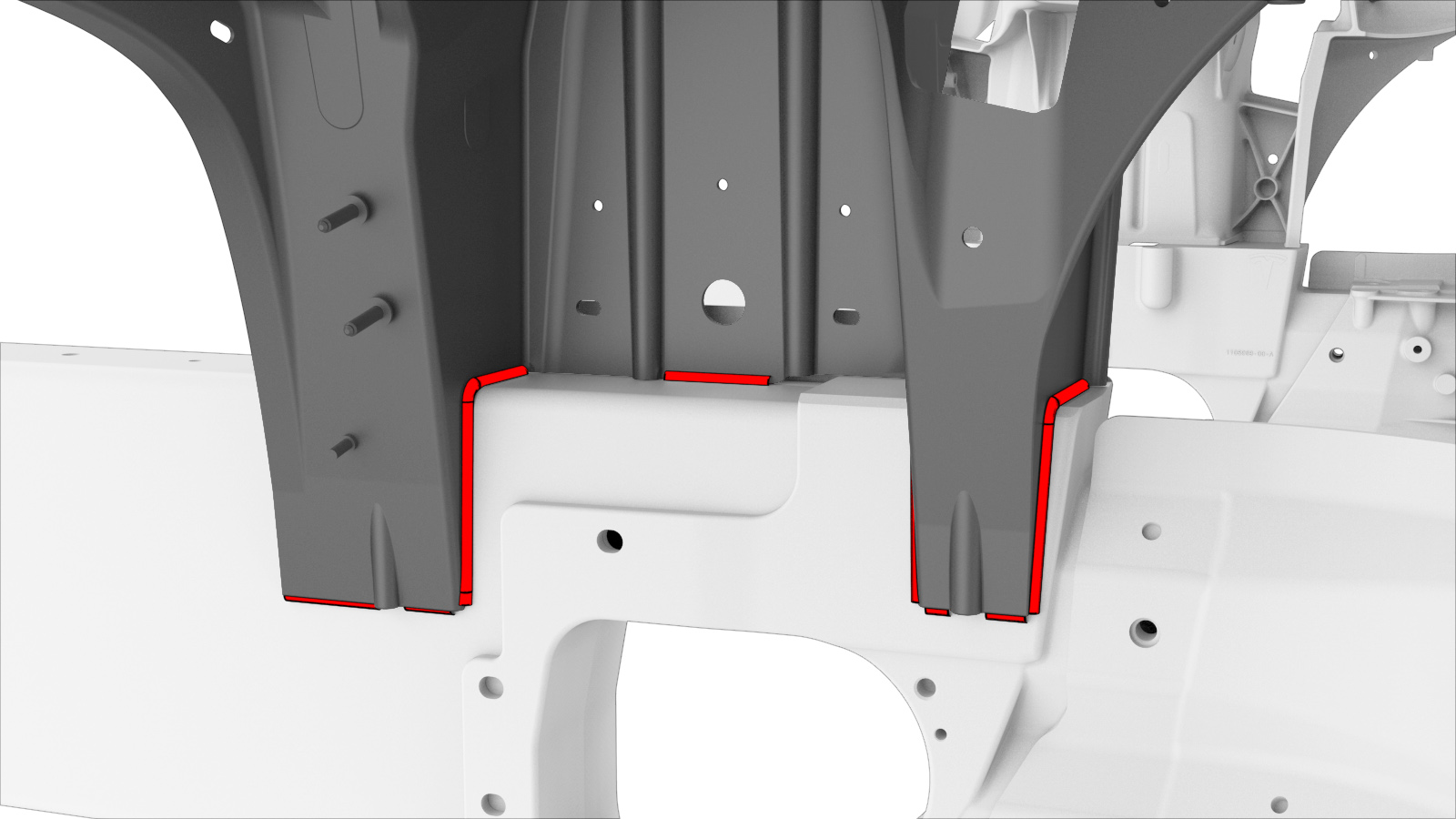- 차량과 새 구성품 또는 구성품들의 접합면에 구조용 접착제를 도포합니다.