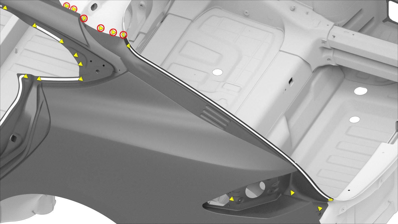 Nota No caso da separação da parte lateral exterior da carroçaria, pode ser utilizado um subconjunto pré-cortado. Consulte Descrições das secções da parte lateral exterior da carroçaria para obter mais informações. |