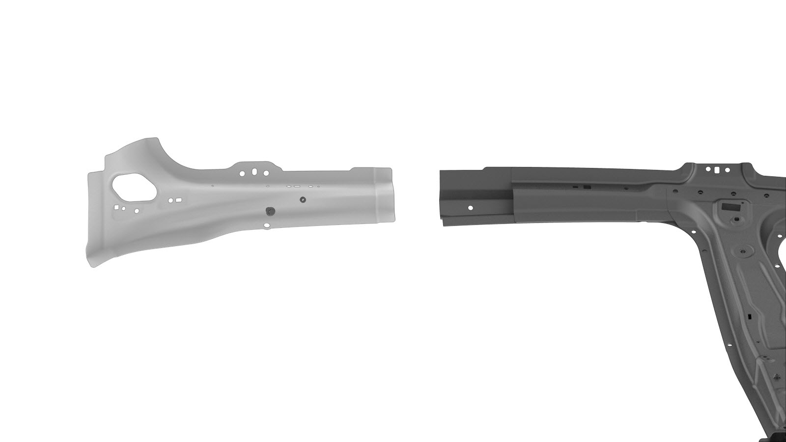 Corte o novo ASSY - A / B PILLAR COMP conforme indicado abaixo para criar o novo componente.