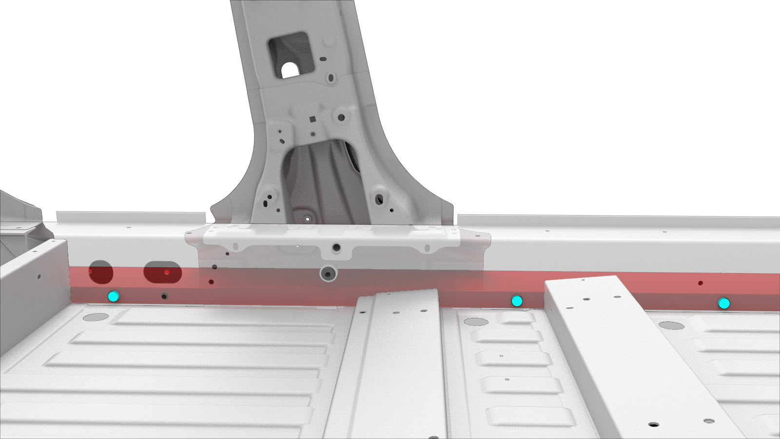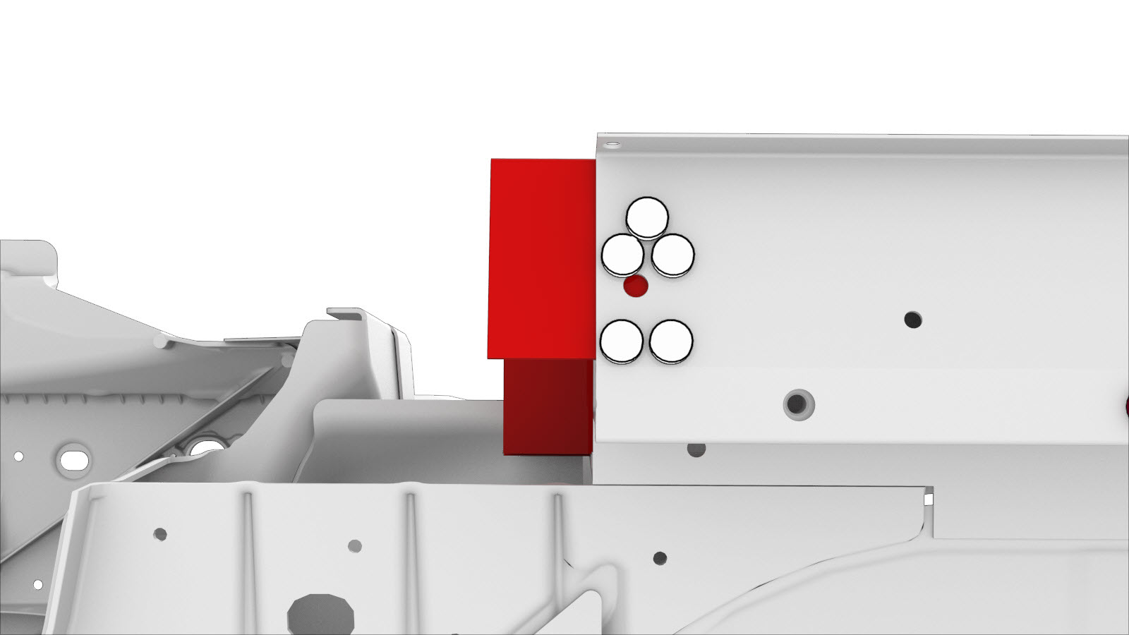Instale o item Reforço da extensão exterior da calha dianteira da carroçaria.