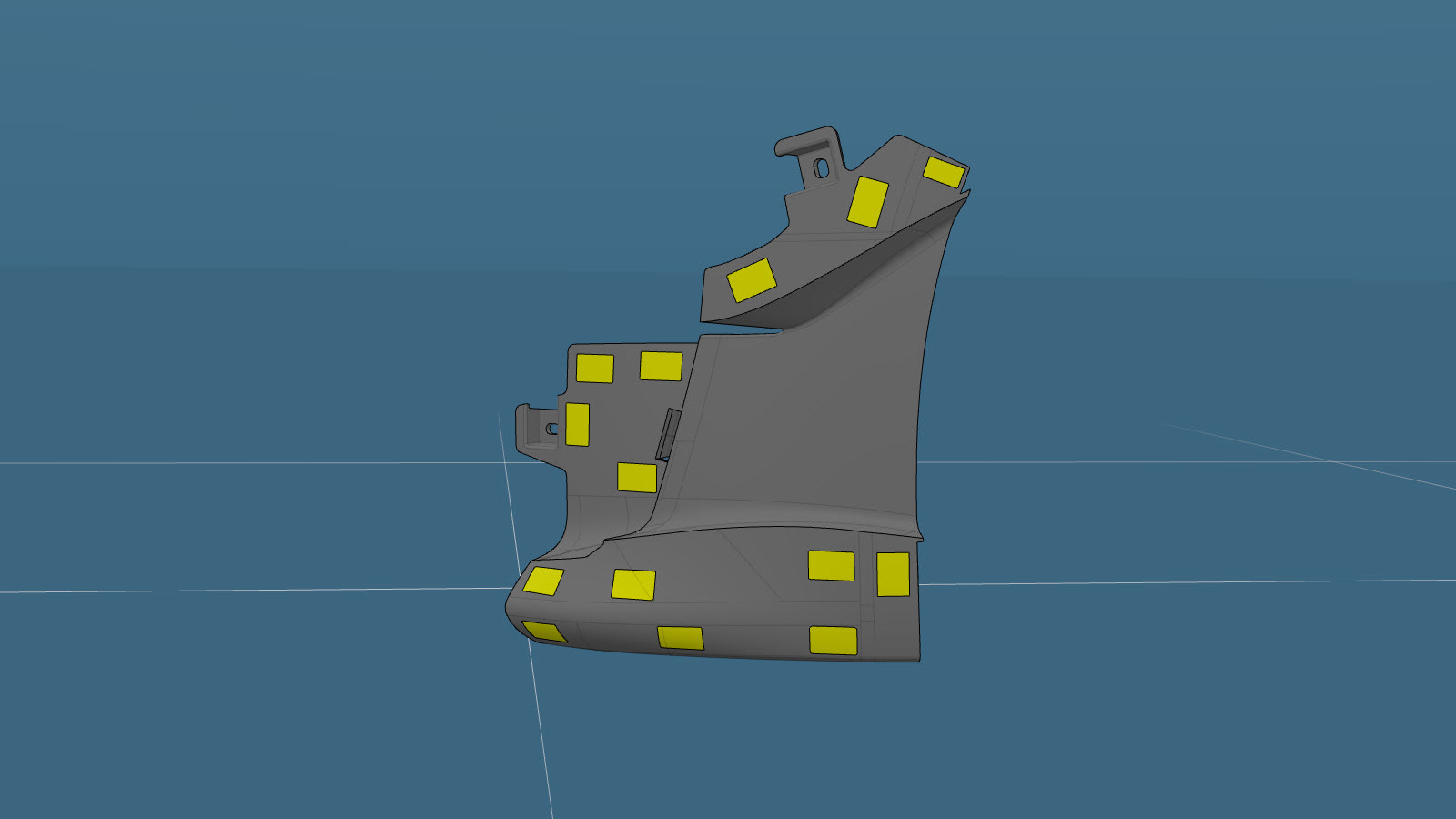 - Eine Reparatur der vorderen Stoßfängerverkleidung ist zulässig. (Zu den Reparaturen zählen das Hinzufügen einer Kunststofffüllung, Kleben, Kunststoffschweißen, Kunststoffheften oder das Erstellen einer weichen Lackkante.)