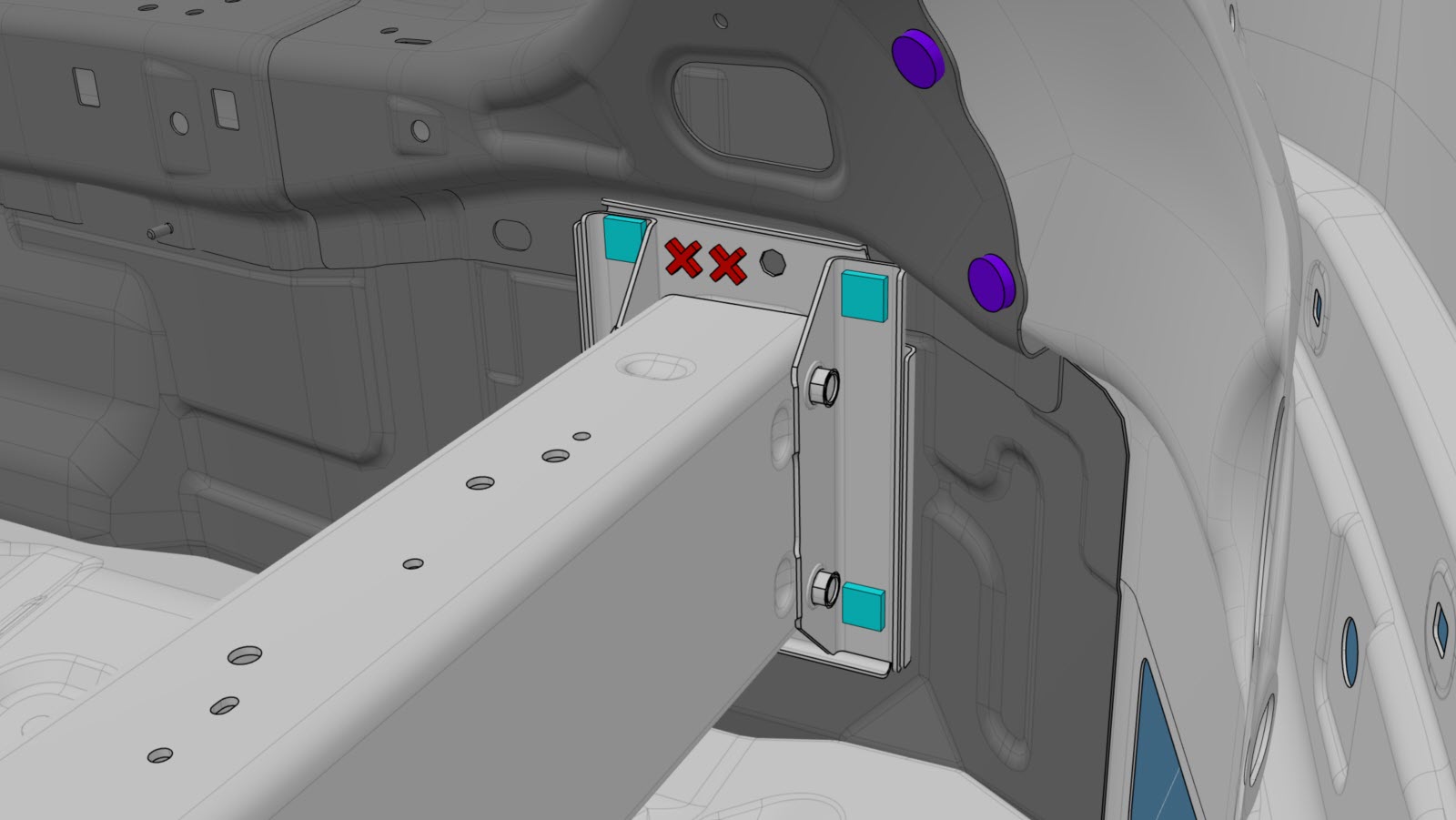 NotaUna X roja indica una ubicación en la que no se está sustituyendo una fijación instalada de fábrica.