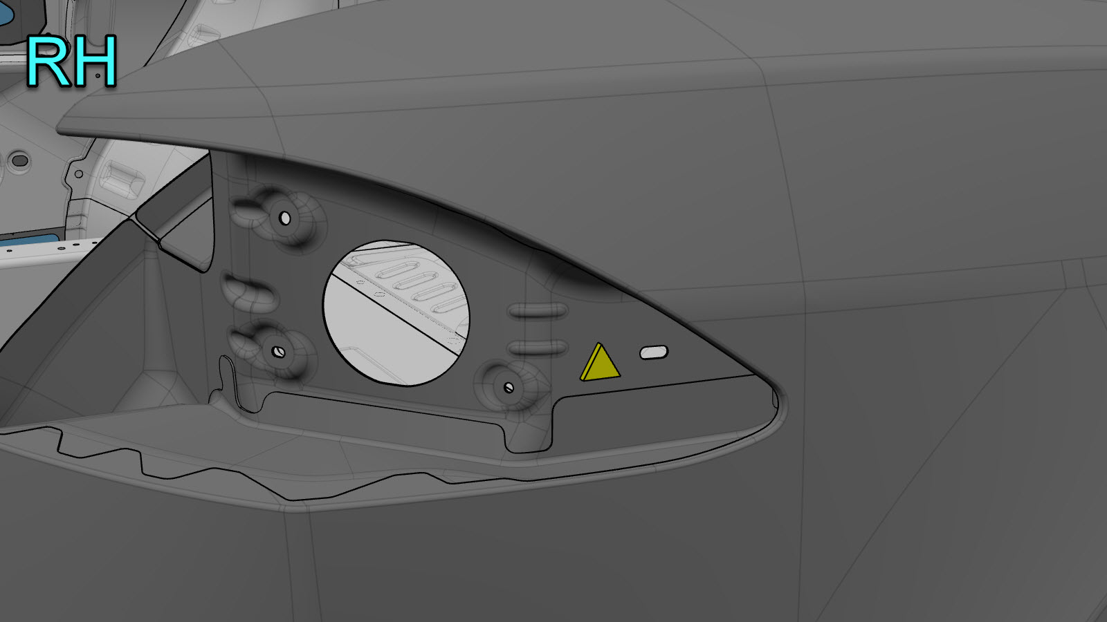 Il existe plusieurs variantes de la procédure du côté extérieur de la carrosserie. Utilisez cette procédure seulement si le véhicule a été construit jusqu'au 17 février 2022. Si le véhicule a été construit après le 17 février 2022, reportez-vous à l'étape Côté extérieur de la carrosserie (véhicules construits après le 17 février 2022).