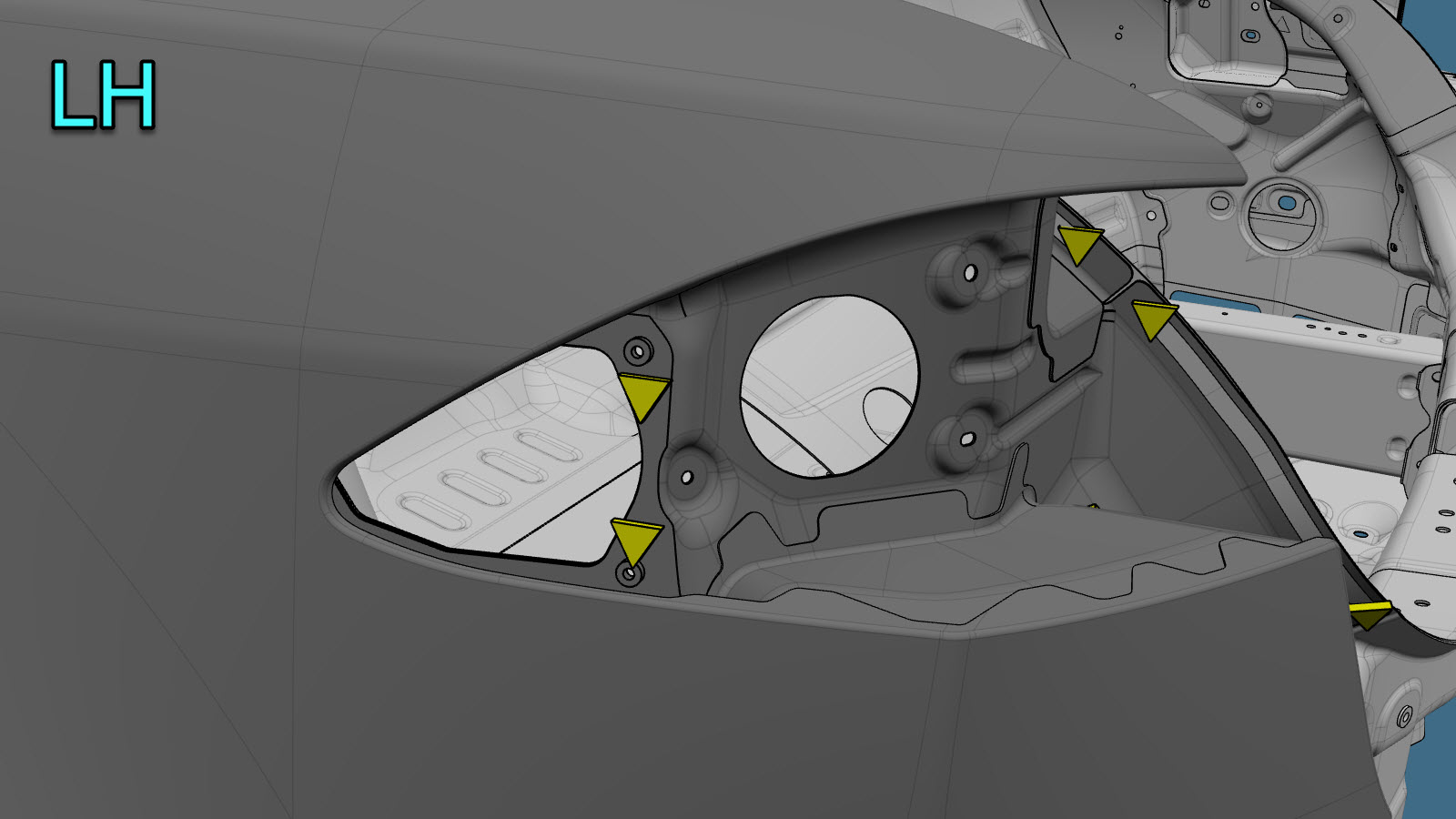 - Remplacé en une seule réparation en tant que composant complet en utilisant la pièce de rechange du côté extérieur de la carrosserie complète et les instructions dans la section Procédure de réparation du présent document.