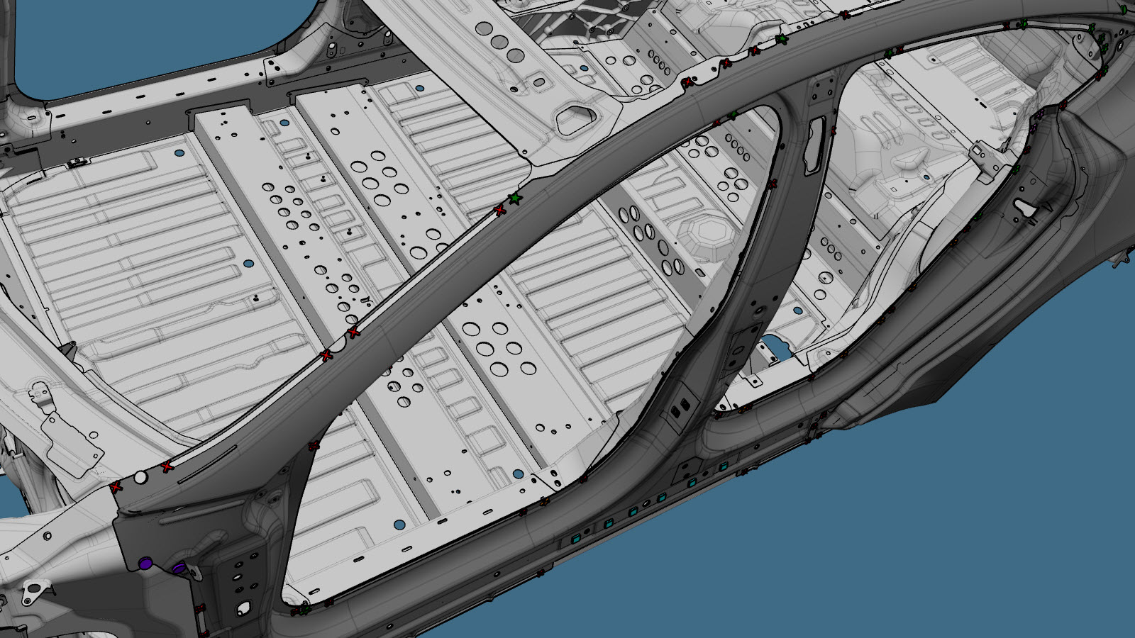 - Lors de la coupe dans la zone où le montant C rencontre le rail de toit :