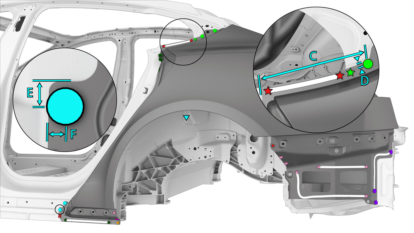 In alternativa, invece di sostituire l'intera parte esterna fiancata completa, è possibile sostituirne una sezione utilizzando una porzione di un nuovo componente della parte esterna fiancata completa, usando la linea di taglio descritta in questo documento. |