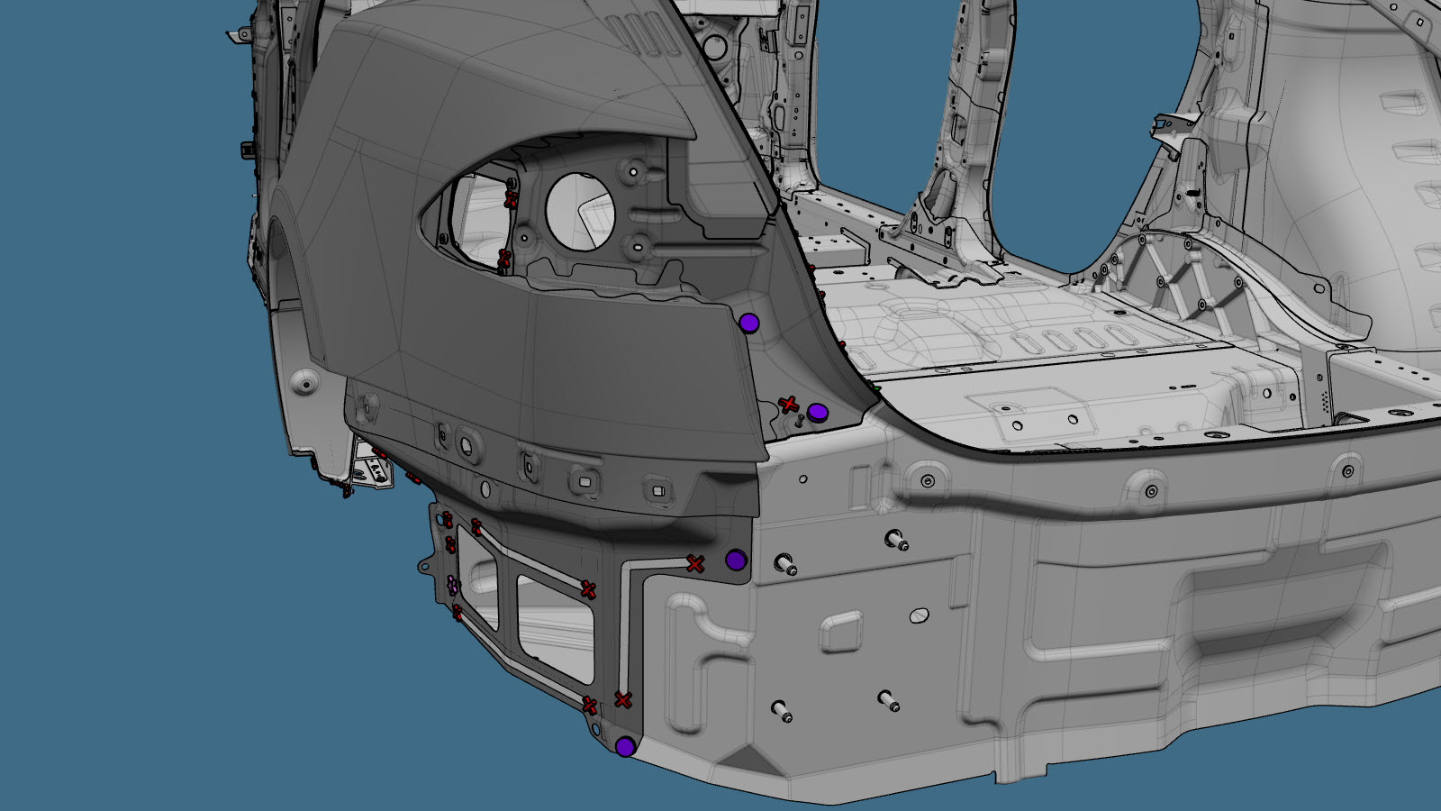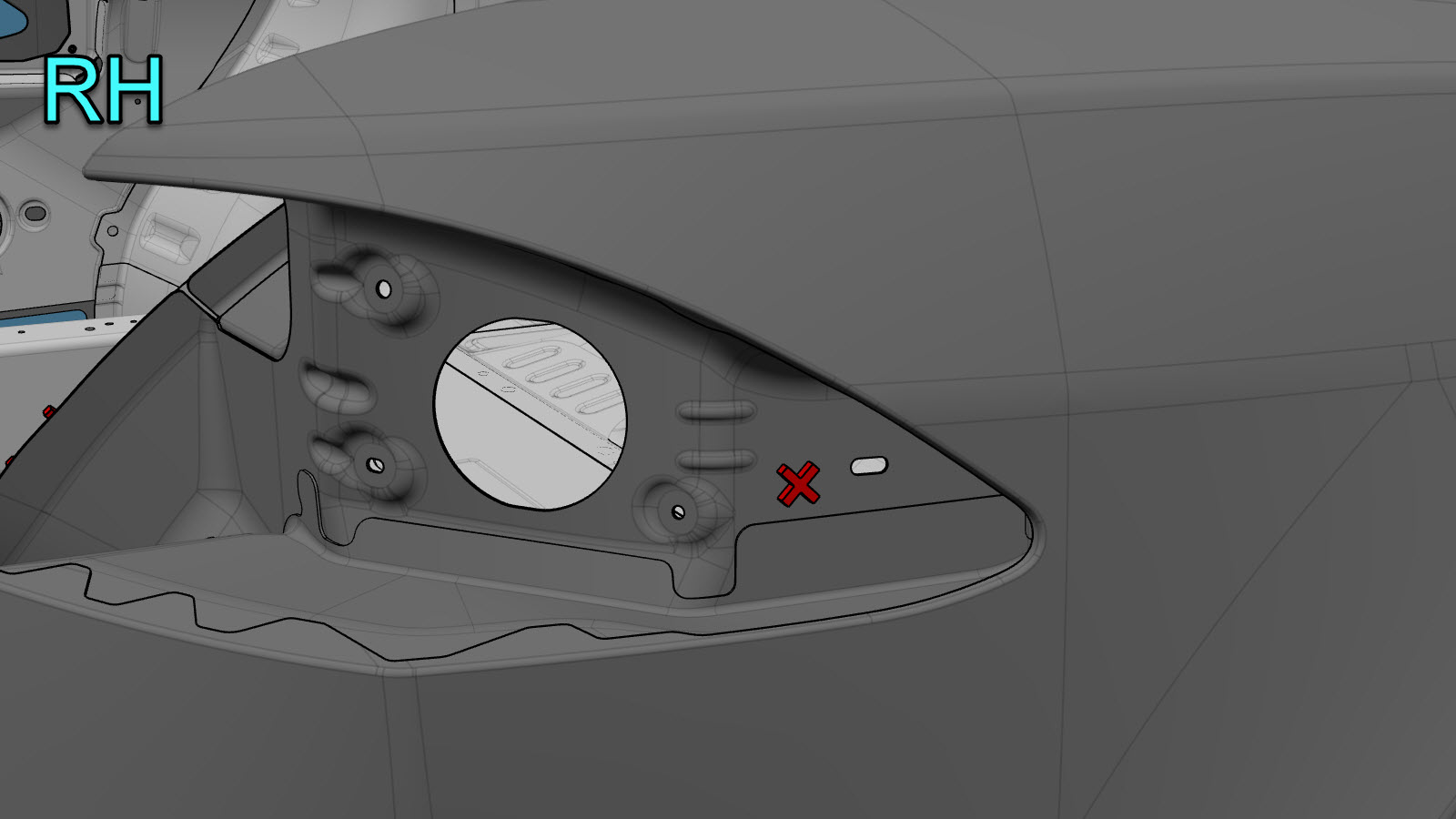 | Quando si esegue il sezionamento nell'area del passaruota, la flangia del passaruota nell'area mostrata in rosso può essere saldata. |