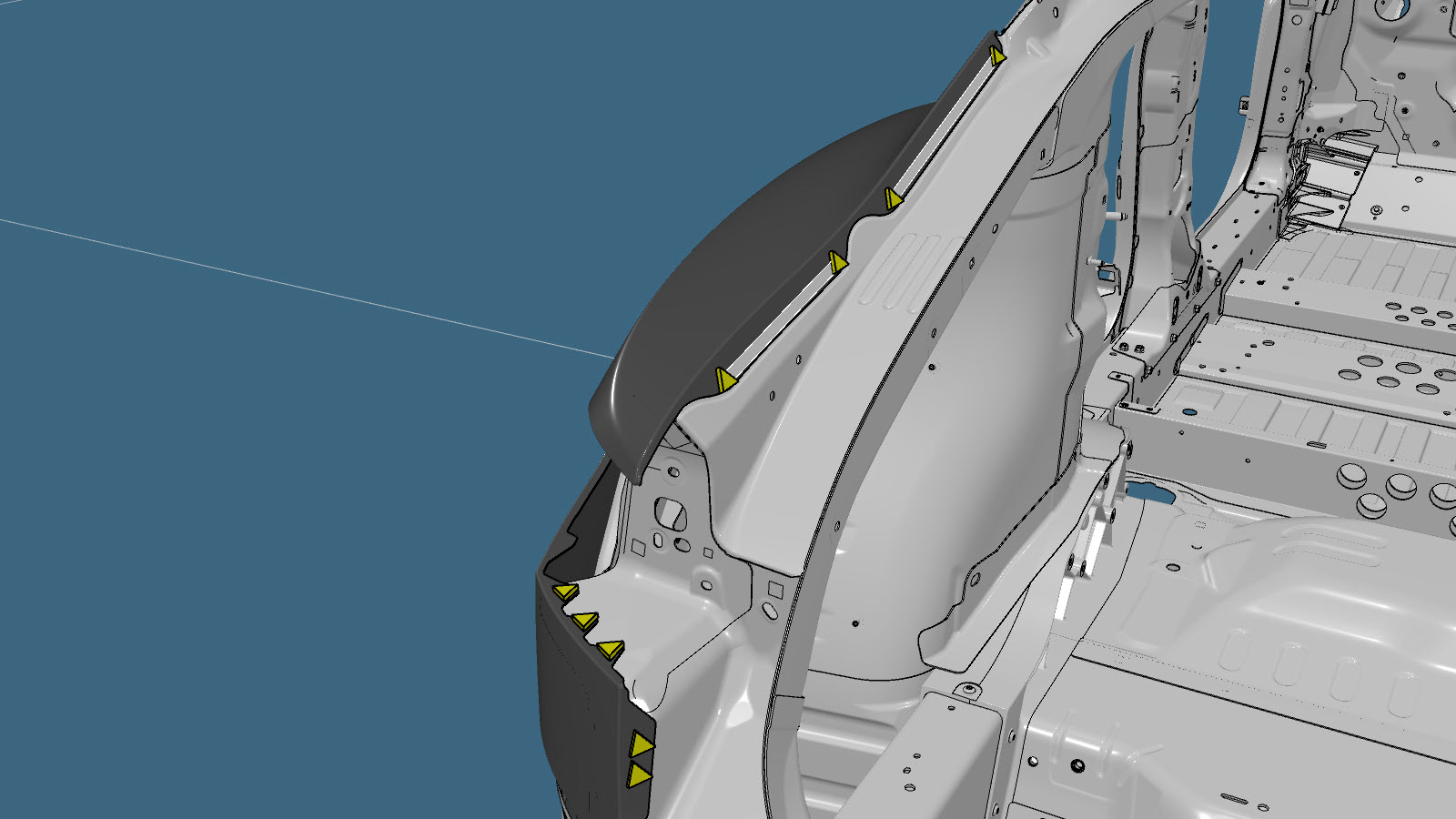 참고쿼터 외측 스킨의 일부만 수리하는 경우 헴 플랜지에서 필요한 부분만 분리합니다.