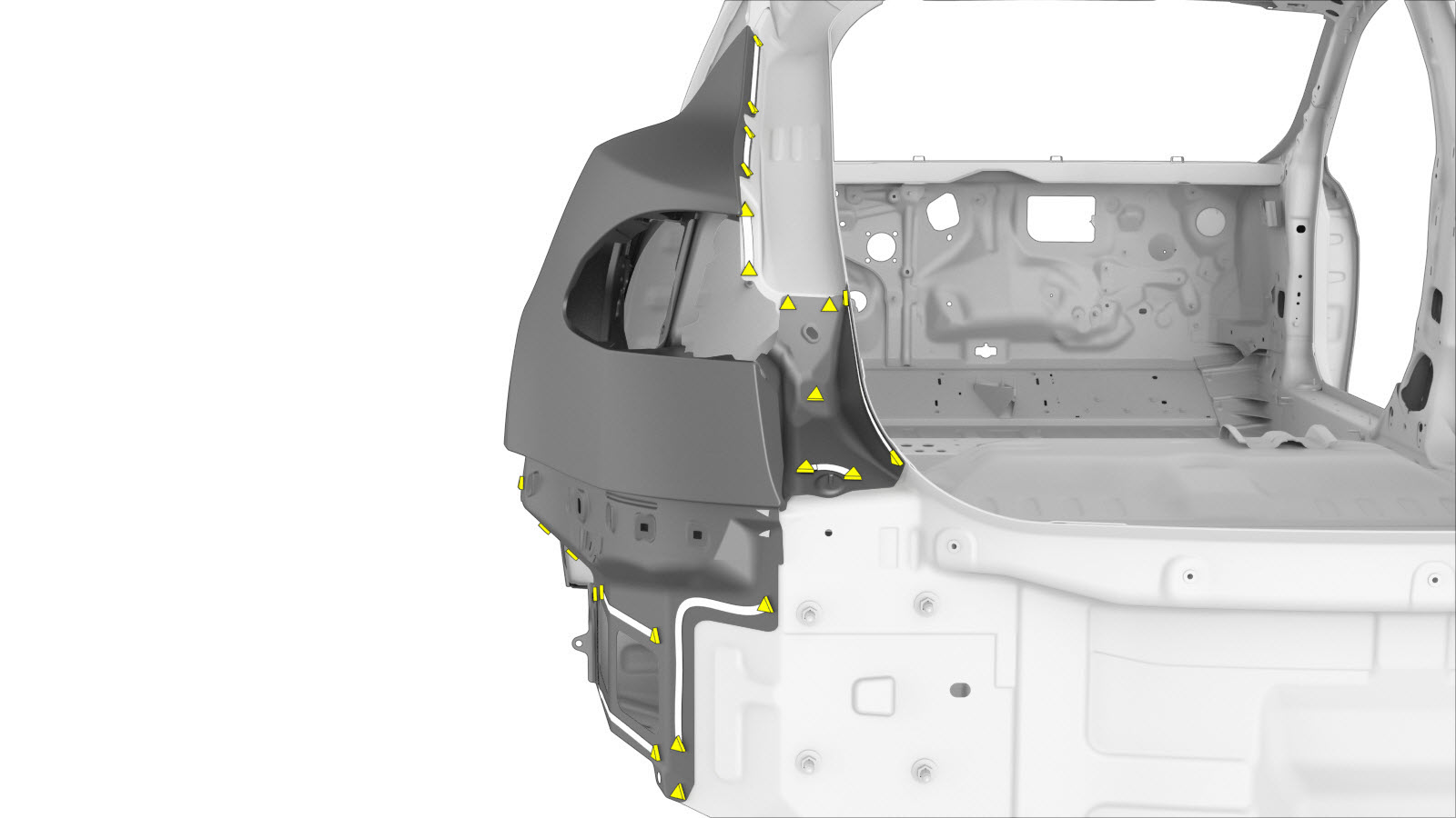 참고쿼터 외측 전체의 일부만 수리하는 경우 헴 플랜지에서 필요한 부분만 분리합니다.