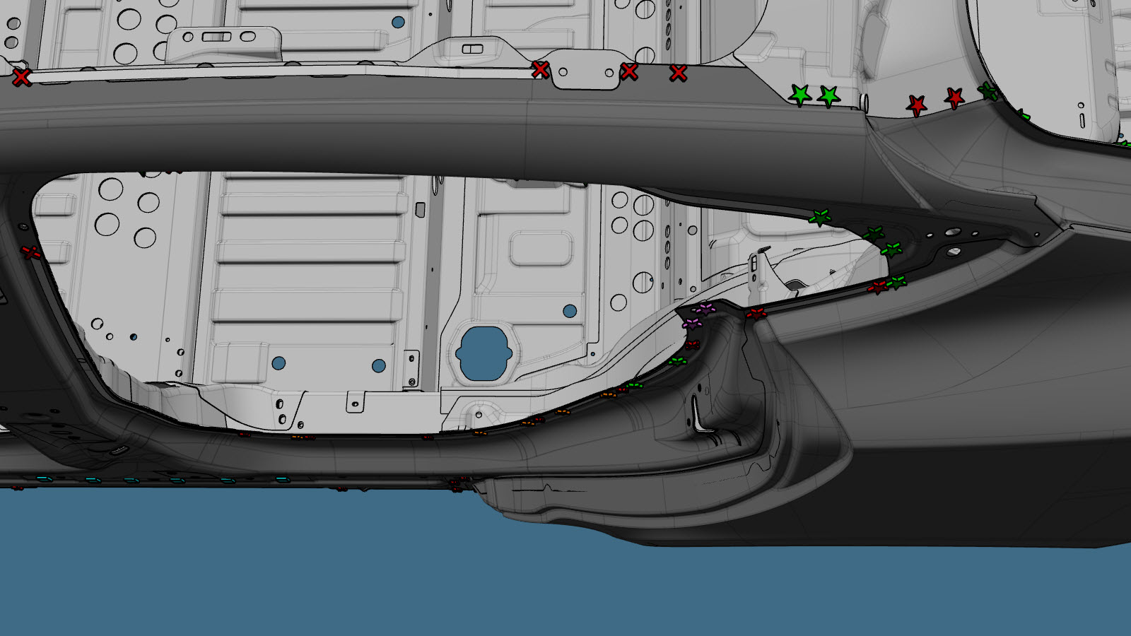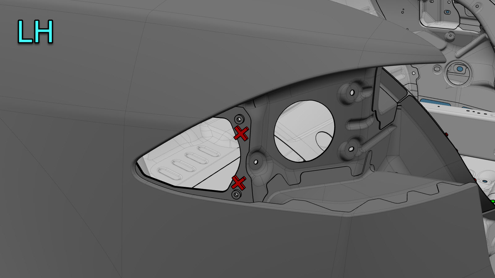 MerkEn rød X indikerer en plassering der en fabrikkmontert festeanordning ikke skiftes ut.
