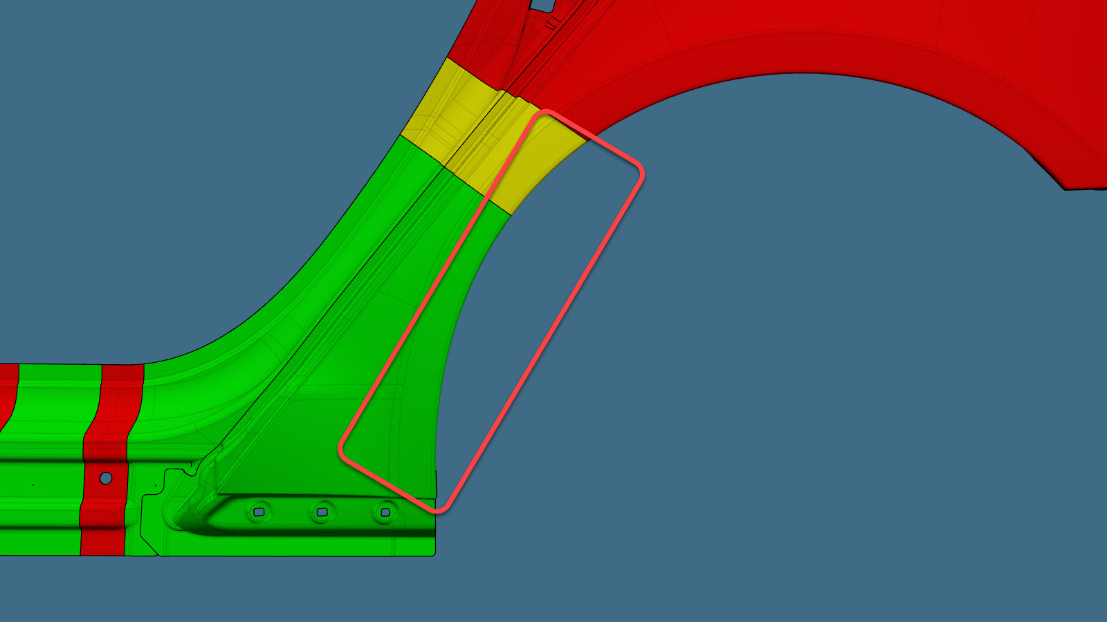 - Ved oppdeling i området der C-stolpen møter det bakre kvartpanelet: