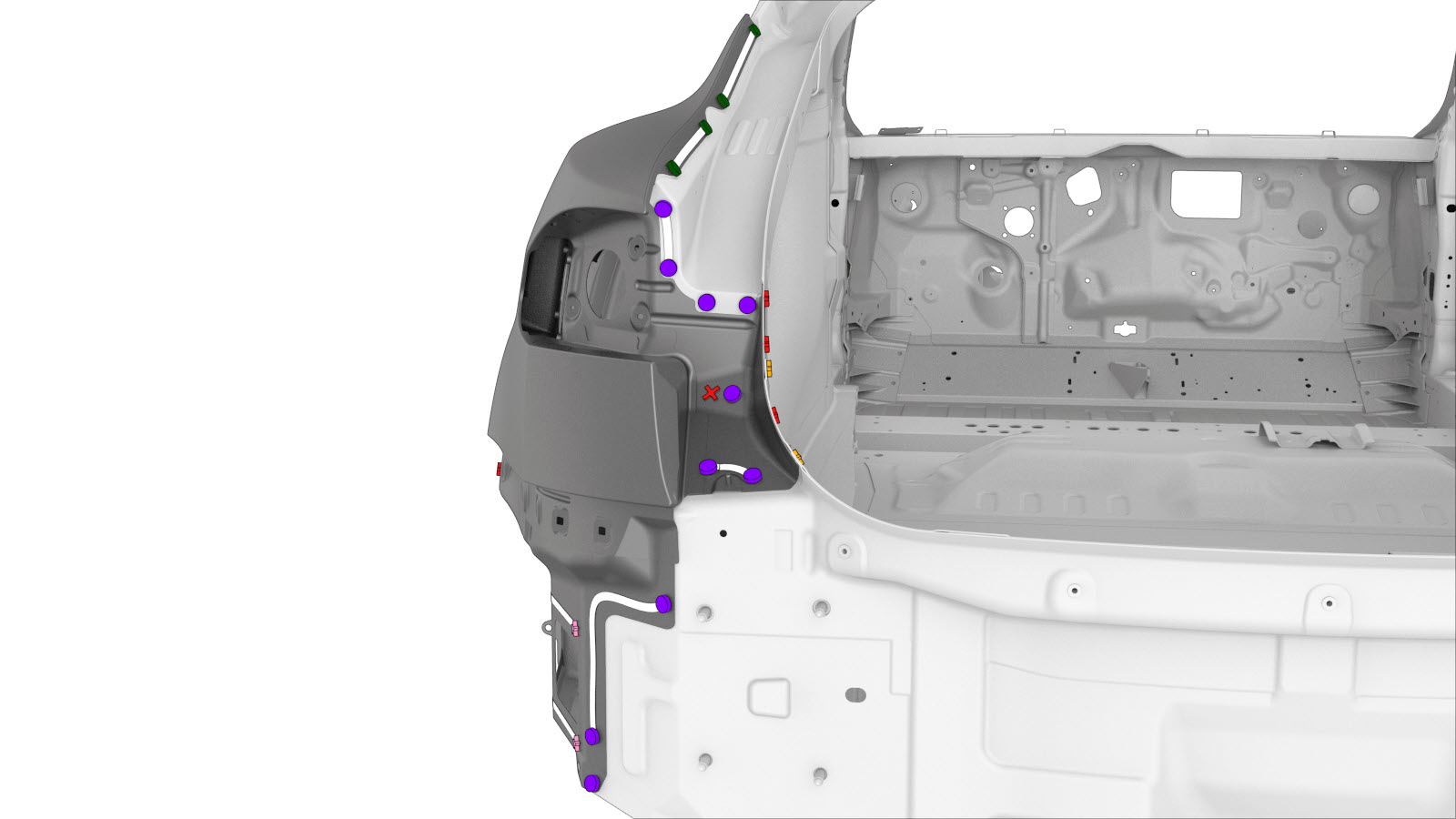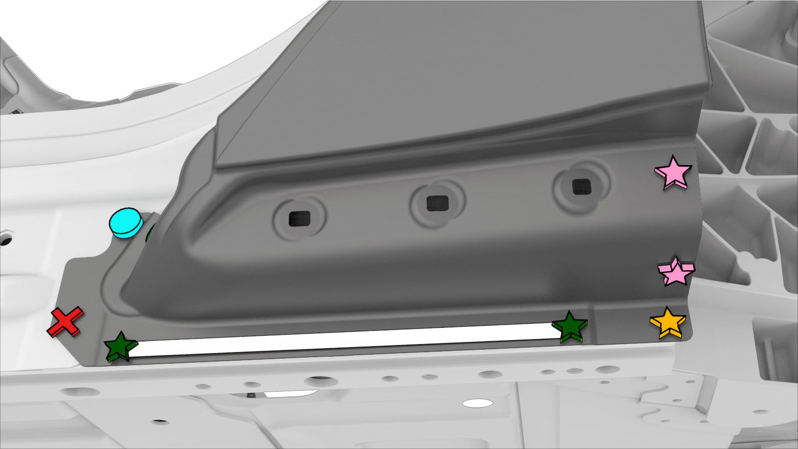 Em alternativa, em vez de substituir a parte exterior de quarto completa, é possível substituir uma secção da parte exterior de quarto completa utilizando uma secção de um componente de parte exterior de quarto completa novo utilizando a linha de corte descrita neste documento. |