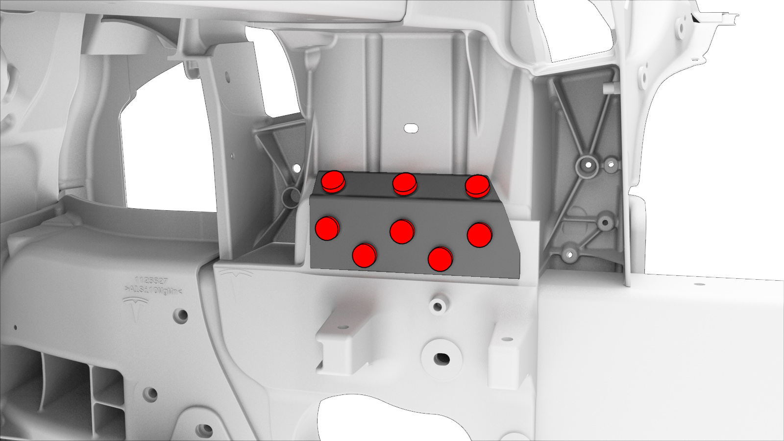 | 8 | Remache estructural, 6,5 mm, mediano , M6x18 | Referencia de Tesla 1006529-00-A. |