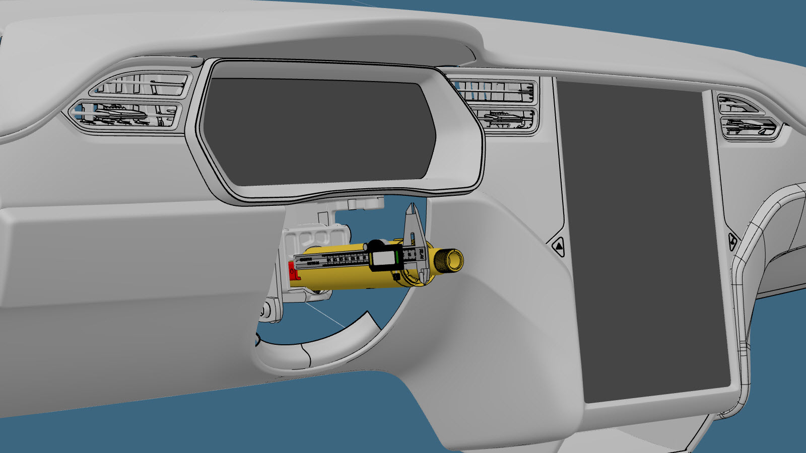 - Mida el lado izquierdo del canal C (en rojo) en el lateral de la columna de dirección. Si el lado izquierdo del canal C se ha retraído más de 2,1 mm dentro del alojamiento, sustituya la columna de la dirección.