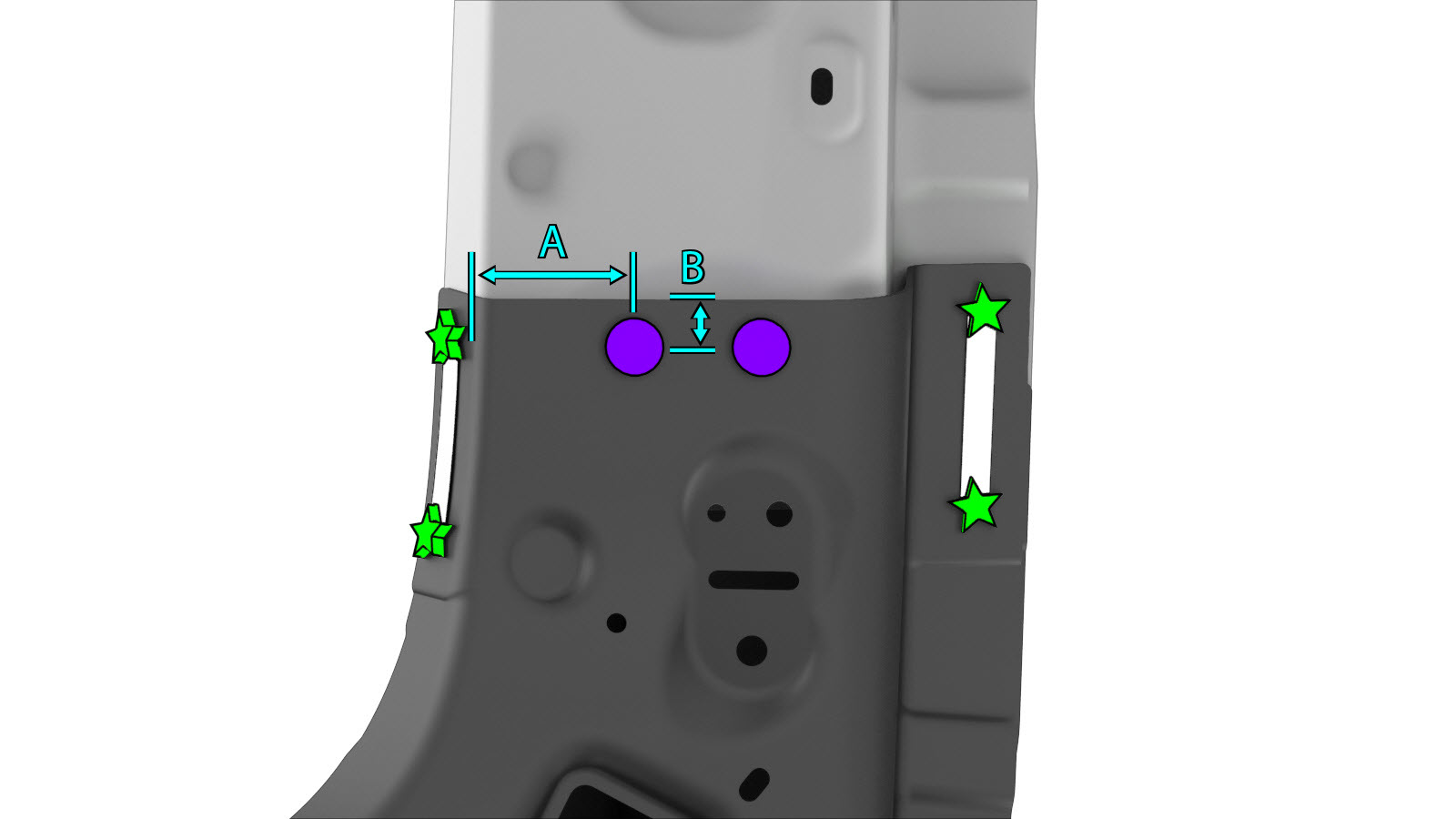 o Soldaduras por puntos de fábricao Perfore a través de las soldaduras por puntos de fábricaNotaAl perforar soldaduras por puntos, utilice una broca que cree un orificio del tamaño correcto para la fijación que sustituirá a la soldadura por puntos.