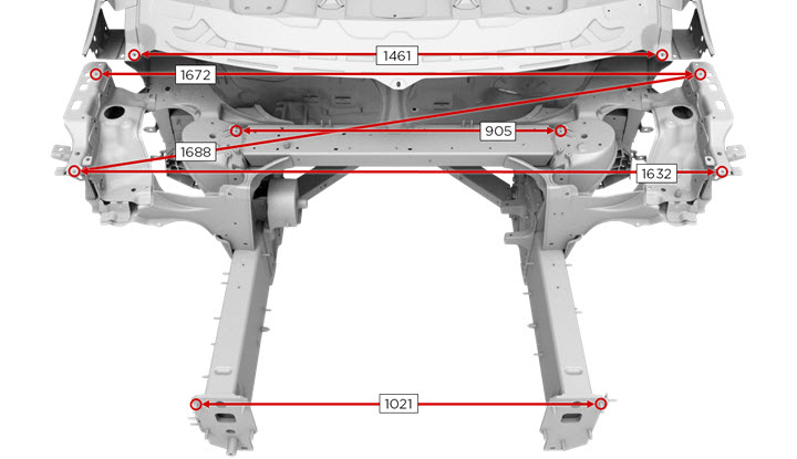 Las mediciones dimensionales sirven como ayuda para diagnosticar daños en el vehículo y determinar si es posible realizar reparaciones estructurales para devolver el vehículo a su estado original.