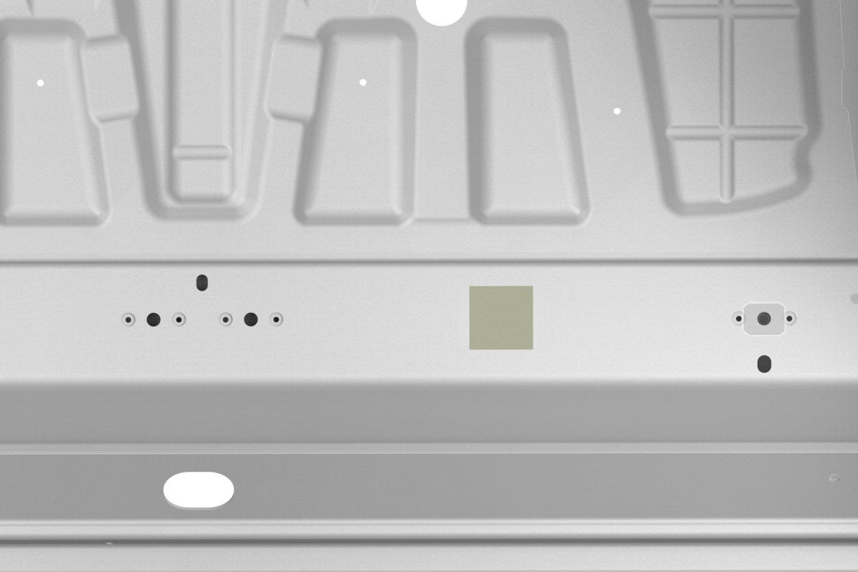 원래 구성품에 접근할 수 있도록 플로어 패널에 구멍을 뚫습니다.공장 출고 구조용 리벳