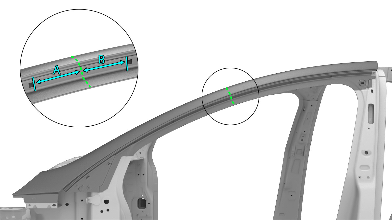 또는 전체 A필러 외측을 교체하는 대신, 이 문서에서 설명된 절단 선을 활용해 전체 A필러 외측의 일부분을 사용하는 방법으로 상단 또는 하단 부분을 교체할 수 있습니다. |