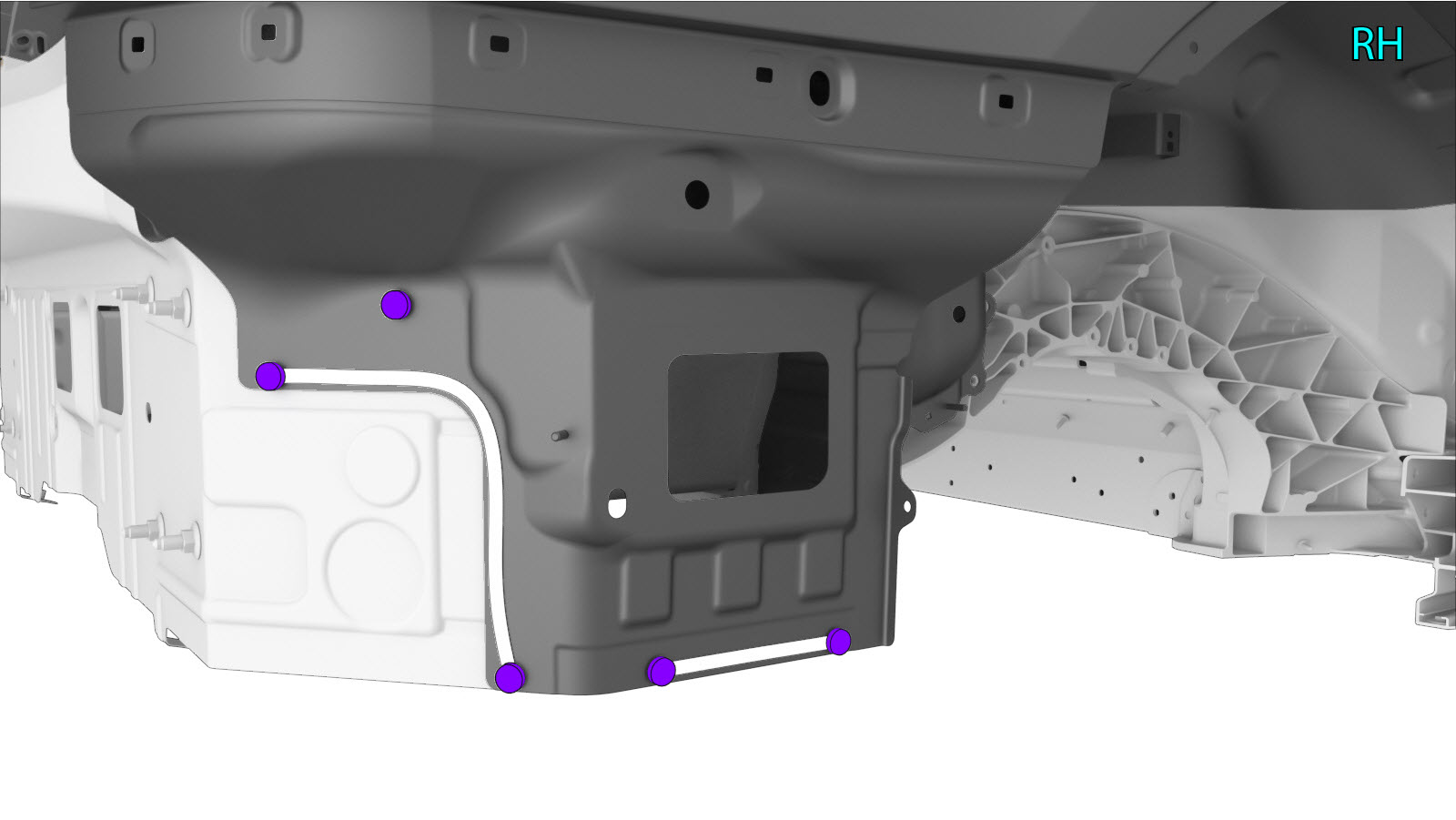 Preencha a folga entre o painel da parte exterior de quarto e o painel da parte inferior exterior de quarto (indicado a vermelho) com uretano.