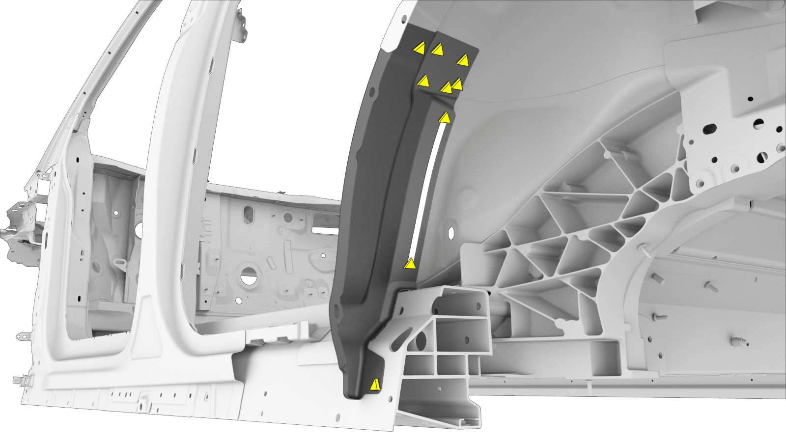 ou SPRs, 5x4,5NotaÉ necessária a seguinte matriz de SPR da Tesla para a instalação deste SPR: KA 075 2113. - Aplique adesivo estrutural nas superfícies de contacto do veículo e no novo componente ou componentes.