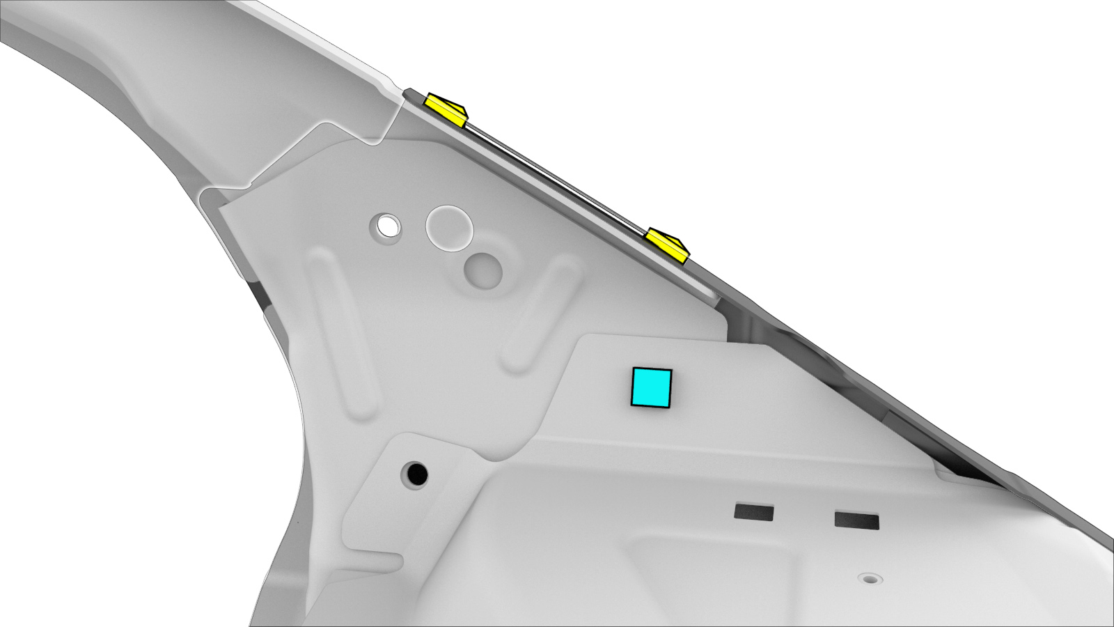 安装A 柱上部外侧下方支架。