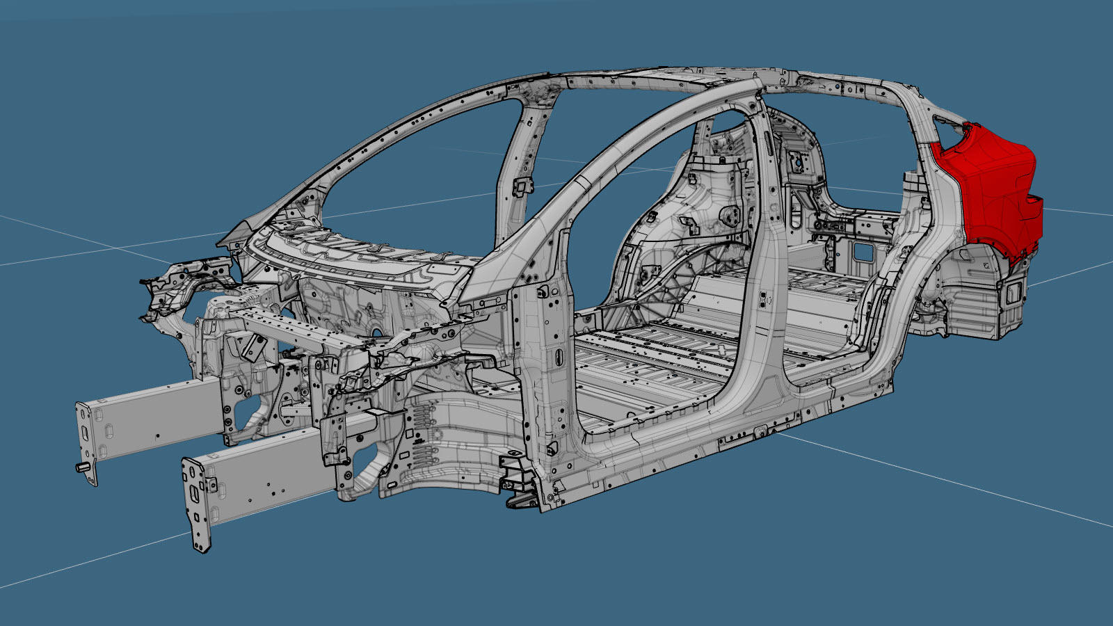 用聚氨酯填充围板外件面板和围板外件下部面板(以红色表示)之间的间隙。