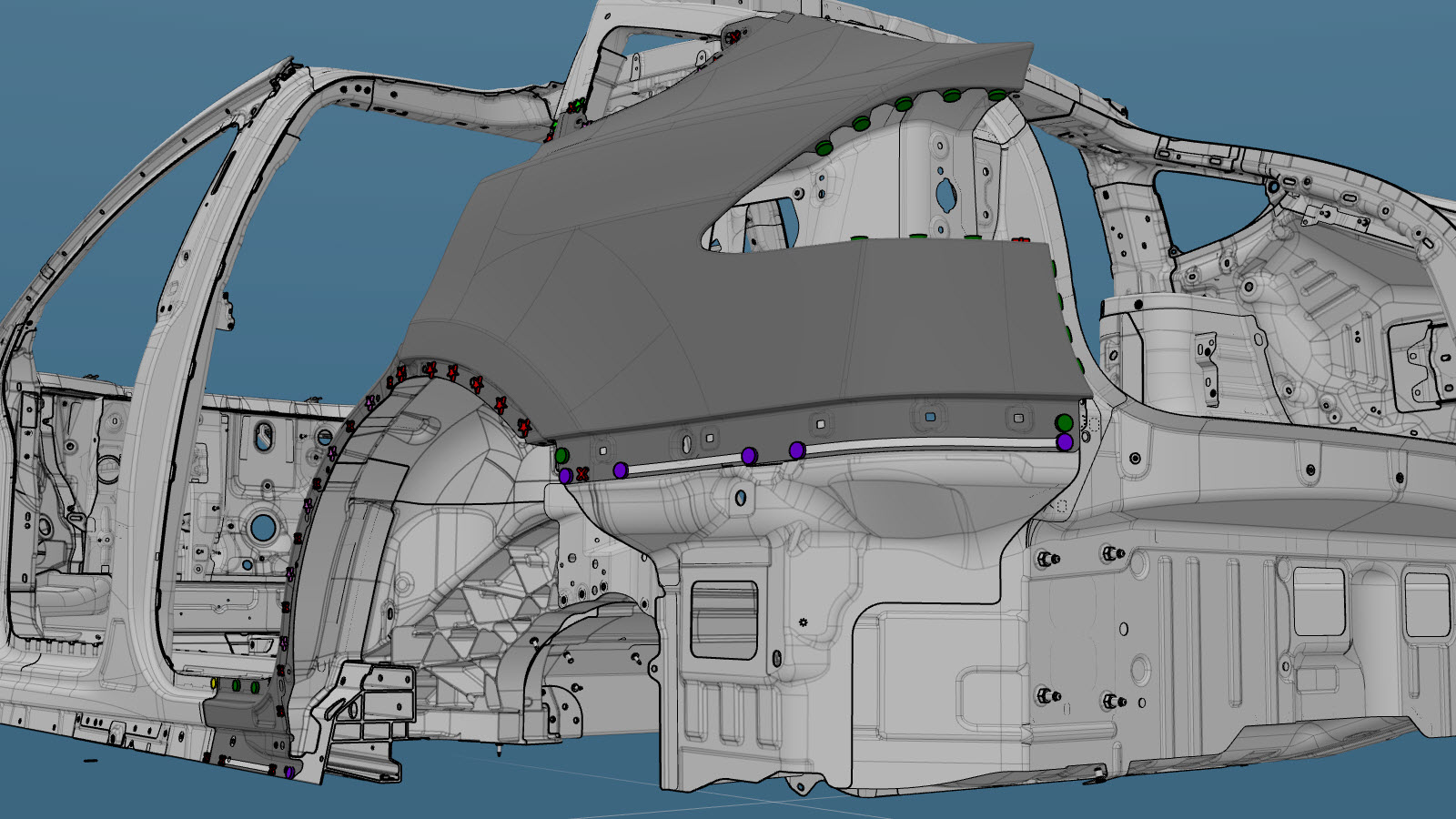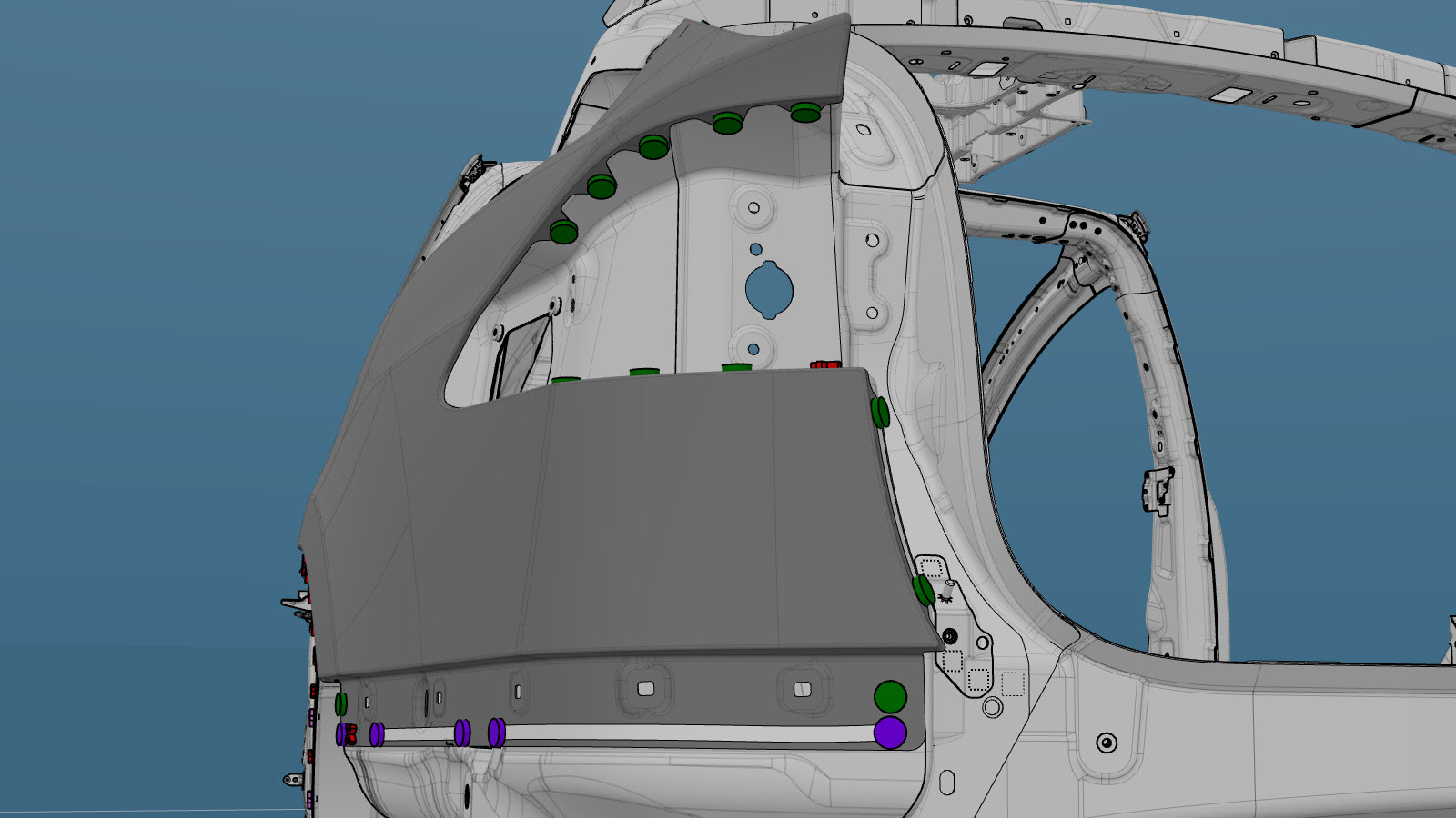 包含 C 柱下部加长件的围板外壳(并非针对中国市场制造的车辆)