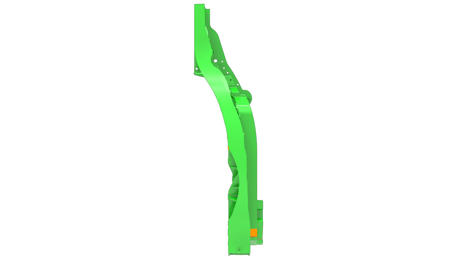 Las imágenes siguientes muestran diferentes vistas de nodo trasero y contienen áreas resaltadas (las imágenes siguientes utilizan el nodo trasero izquierdo a modo de referencia, pero las áreas de reparación en el componente de la parte derecha son similares). Compare el área dañada del nodo trasero del vehículo con las siguientes imágenes y, a continuación, utilice los criterios de reparación correspondientes al color de la zona resaltada para localizar los criterios que se deben utilizar a fin de determinar si el área dañada se puede reparar.