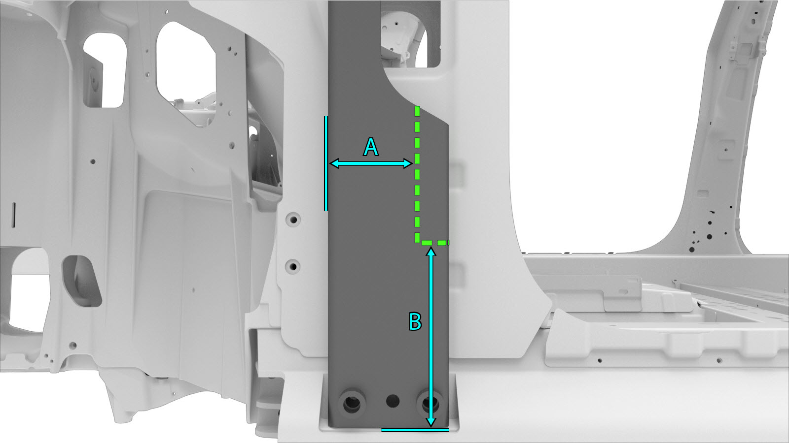 Perfore un orificio de 20 mm en la pieza de servicio de refuerzo del pilar de la bisagra en la ubicación indicada.