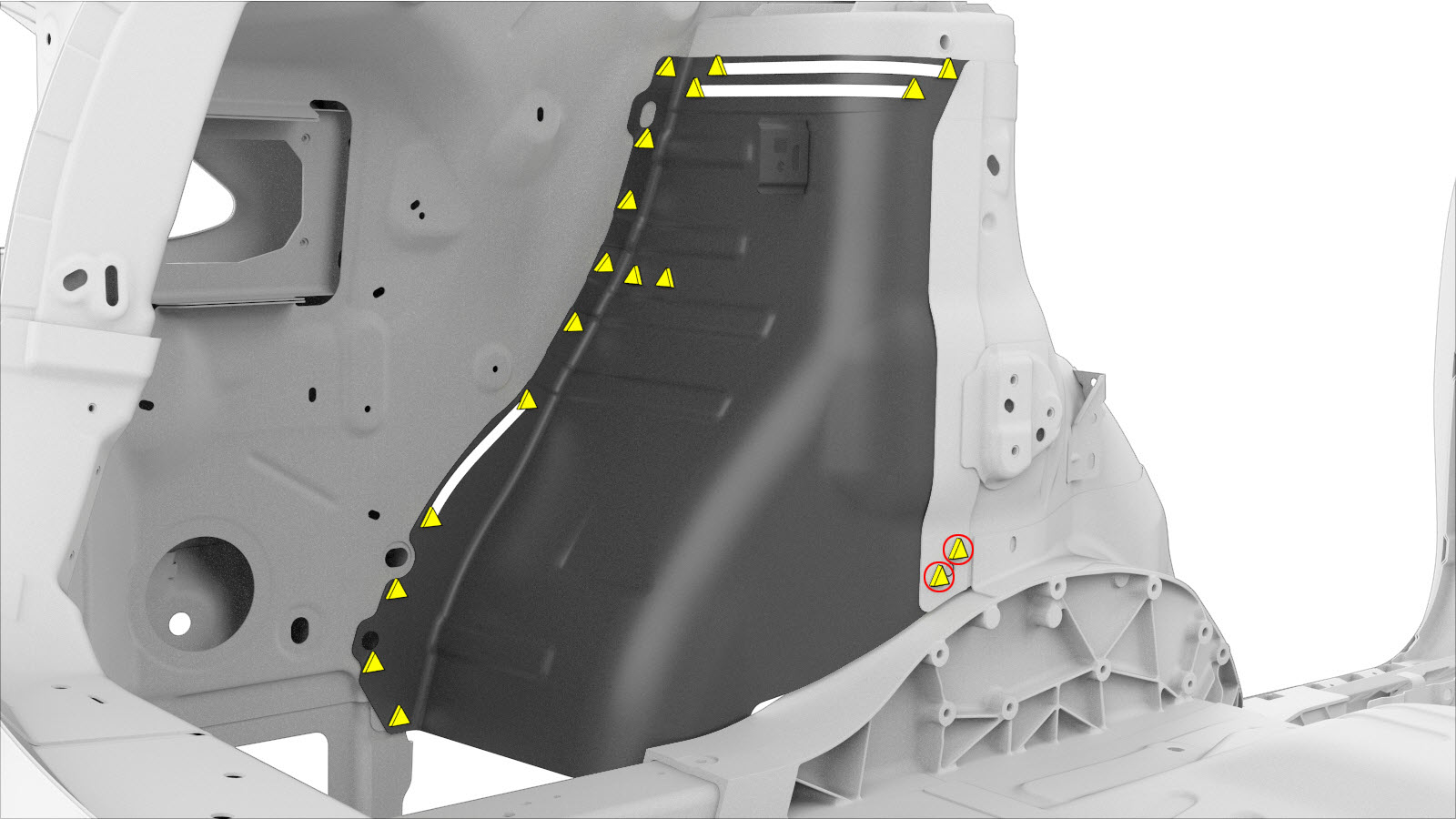 - Aplique adhesivo estructural en las superficies de contacto del vehículo y en el nuevo componente o componentes.